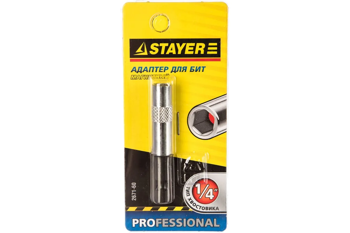 Адаптер ПРОФИ STAYER 2671-60 применяется совместно с ручным или механизированным инструментом и предназначен для фиксации бит с шестигранным хвостовиком. Одна часть переходника зажимается в инструменте, а другая быстро и надежно фиксирует биту с помощью магнита. Приспособление облегчает выполнение монтажных работ. Длина адаптера - 60 мм.