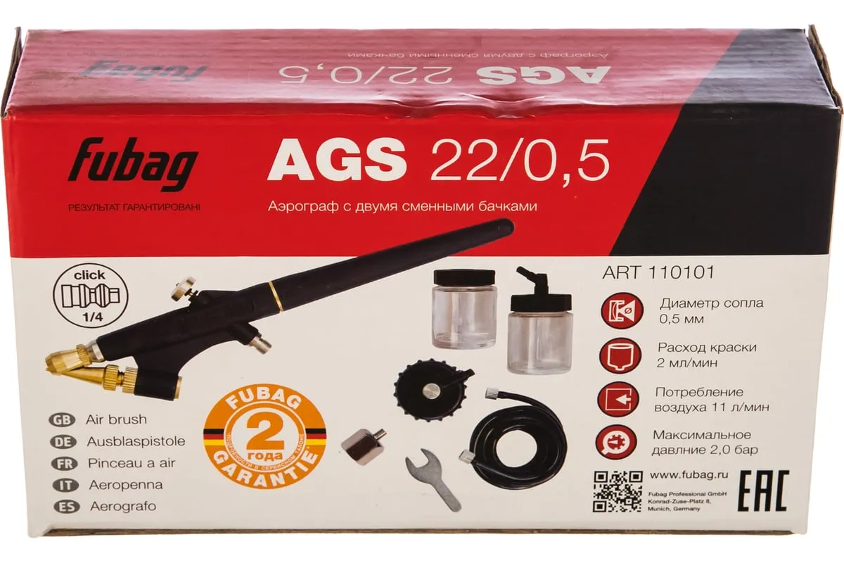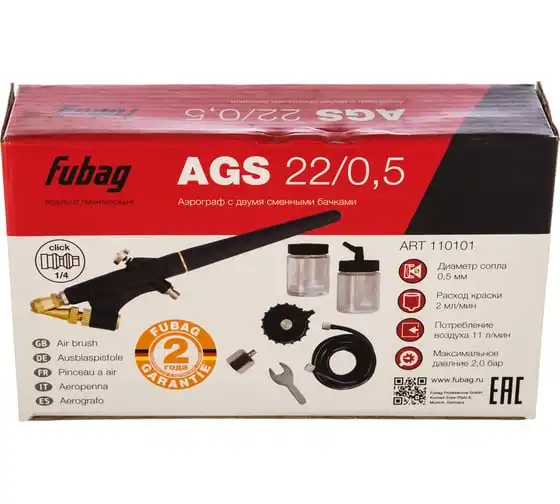 Аэрограф FUBAG 110101 - это инструмент, работающий на сжатом воздухе, используемый для профессиональных работ. Область применения - окраска поверхностей. Устройство оснащено прямой узкой рукоятью (ее удобно держать как карандаш) - для точного выполнения рисунков.