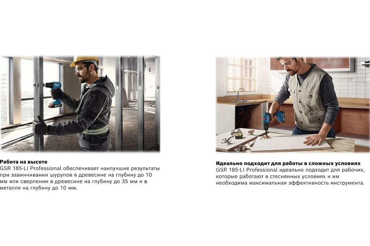Аккумуляторная дрель-шуруповерт GSR 185-LI Professional предназначена для выполнения сложных работ, показывая этом превосходную производительность в компактном корпусе.