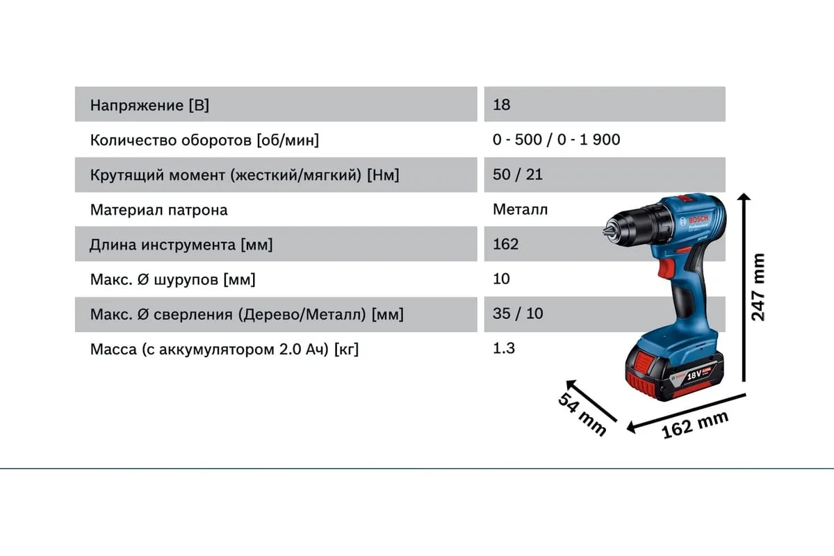 GSR 185-LI Professional оснащен бесщеточным двигателем, что означает увеличенный срок службы инструмента и большее количество выполненных работ на одной зарядке. Он развивает максимальную частоту вращения 1900 об/мин, обеспечивая высокий уровень эффективности на рабочей площадке при завинчивании в древесину или сверлении дерева и металла. LED-подсветка для освещения рабочей зоны и индикации состояния инструмента. Электронная система защиты инструмента.