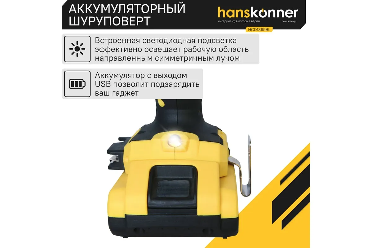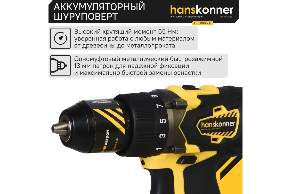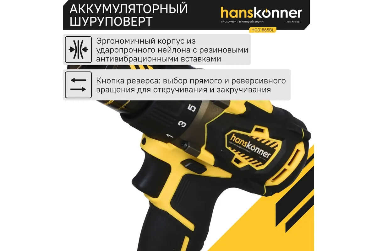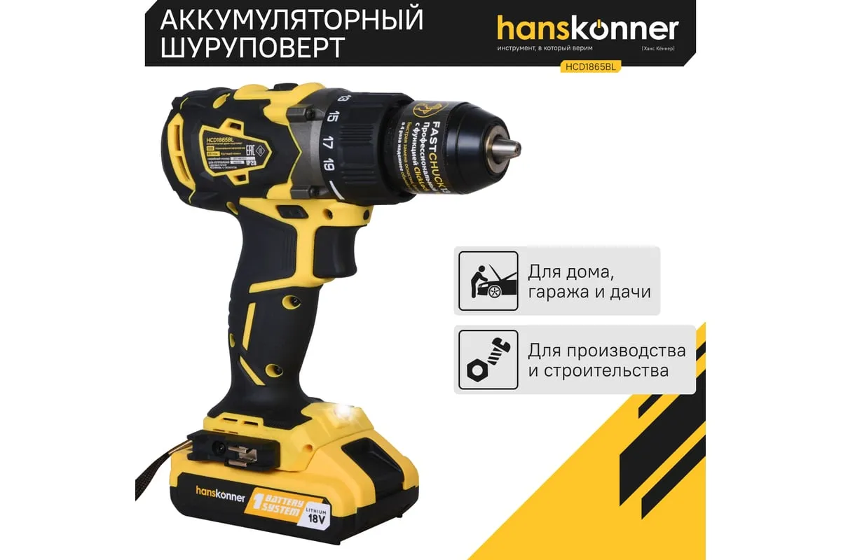 Аккумуляторная дрель-шуруповерт Hanskonner HCD1865BL используется для сверления отверстий и монтажа крепежа. Два аккумулятора в комплекте способствуютдлительной деятельности без перерывов. Светодиодная подсветка обеспечивает качественное выполнение работыв темных условиях. Двухскоростной редуктор позволяетнастроить инструмент под разные материалы.