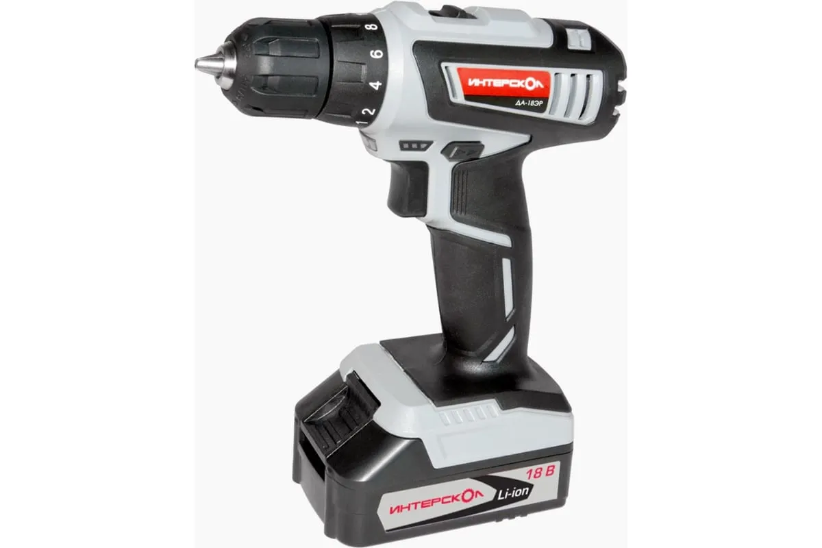Аккумуляторная дрель-шуруповерт ИНТЕРСКОЛ ДА-18ЭР 536.0.2.02 подходит как профессионалам, так и домашним мастерам. С ее помощью можно просверлить отверстия в мягких материалах, а также закрутить/открутить крепеж.