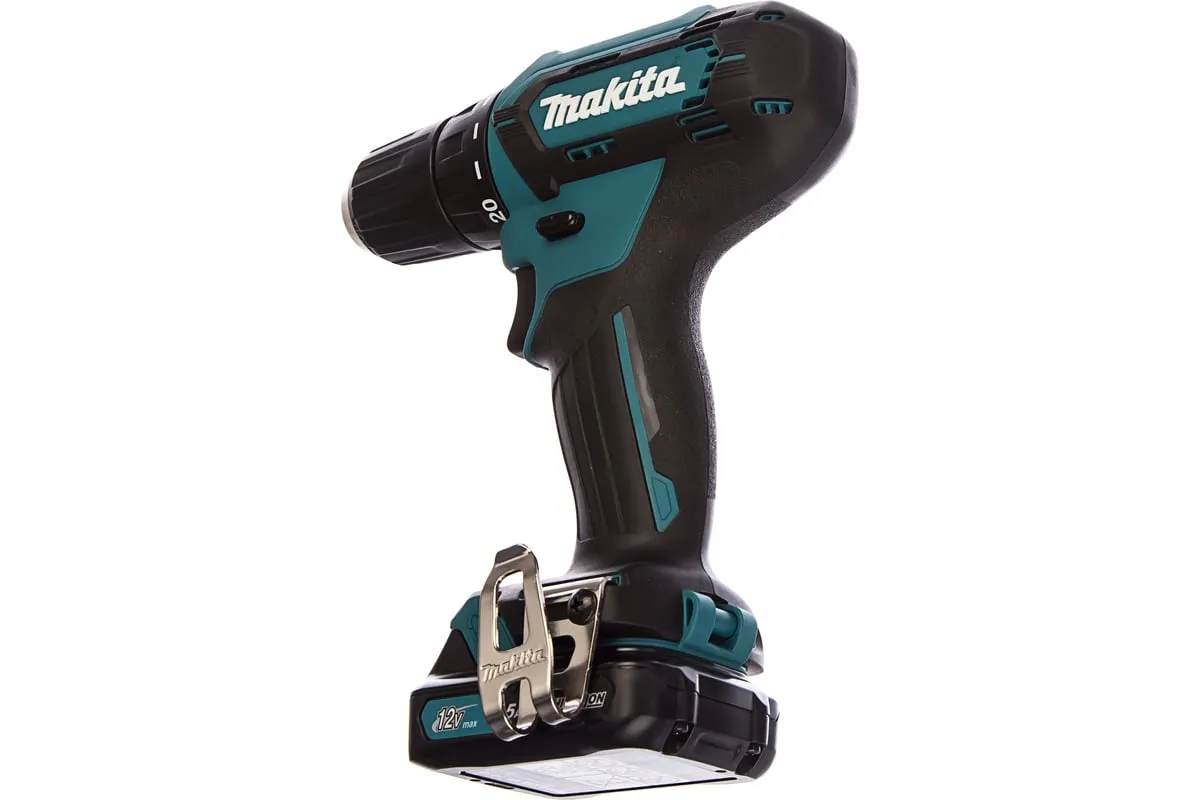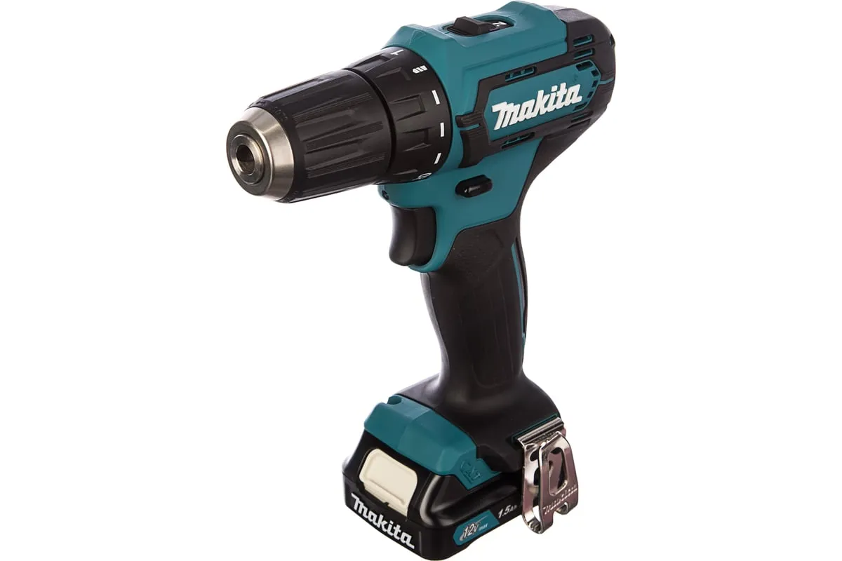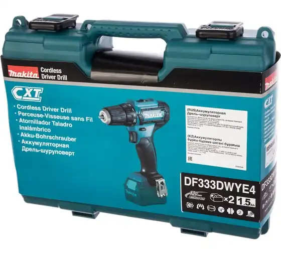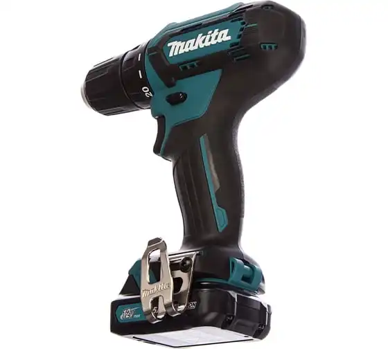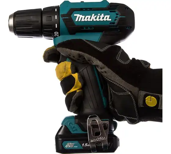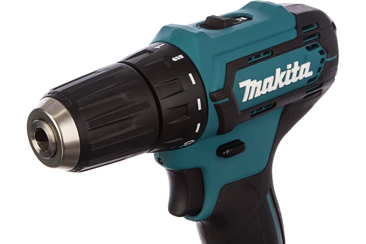 Аккумуляторная дрель-шуруповерт Makita DF333DWYE4 подходит для сверления отверстий и монтажа оснастки.