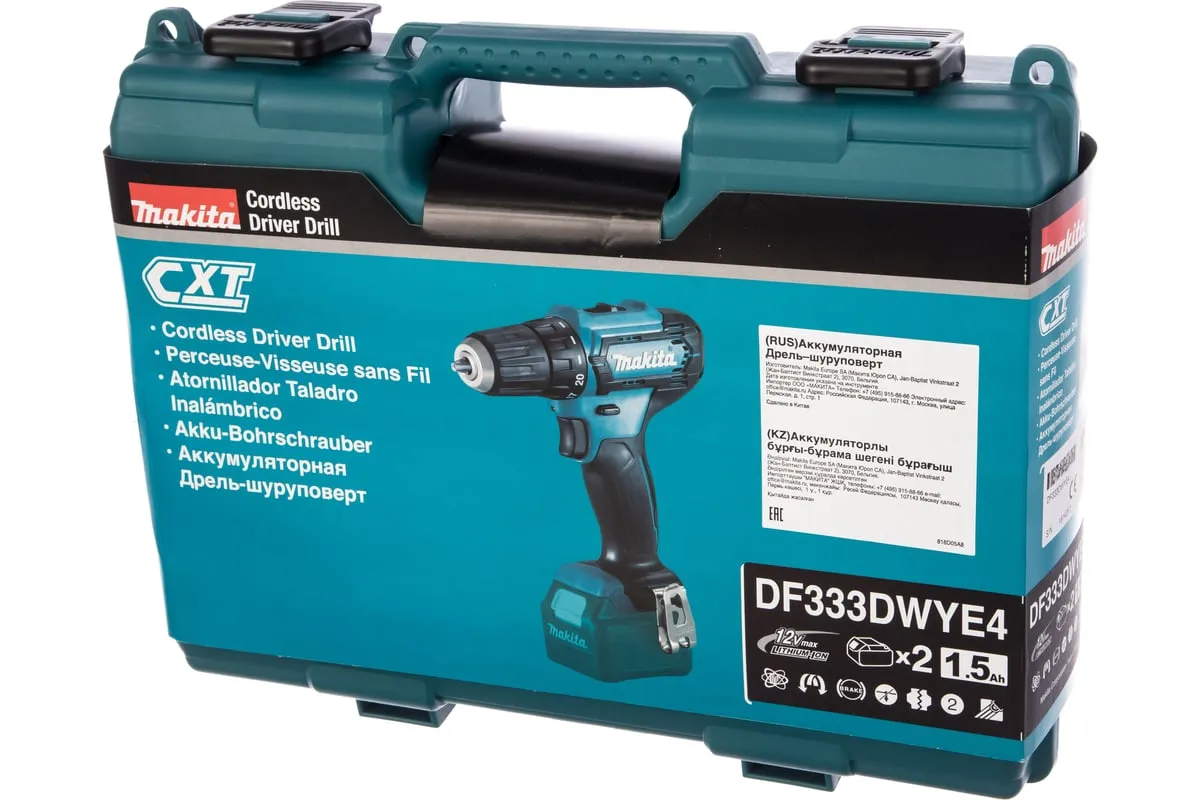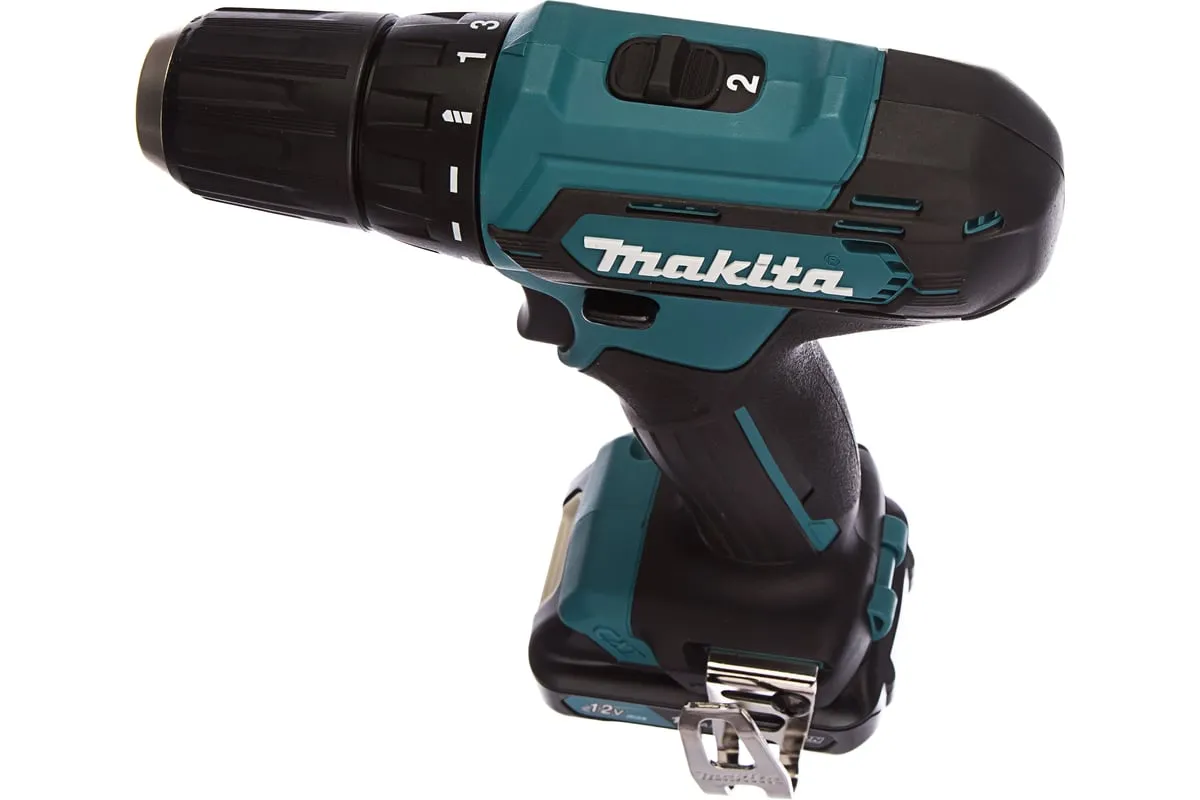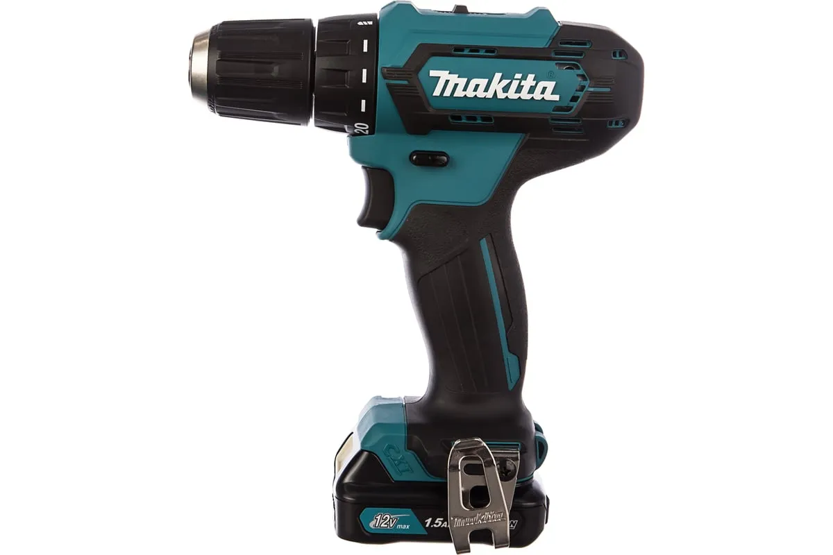 Аккумуляторная дрель-шуруповерт Makita DF333DWYE4 подходит для сверления отверстий и монтажа оснастки.