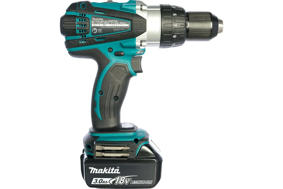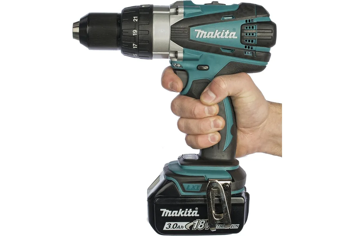 Аккумуляторная дрель-шуруповерт Makita DHP458RFE снабжена мощным двигателем, что обеспечивает высокую производительность. Она имеет металлический редуктор, благодаря чему увеличивается износостойкость. Наличие быстрозажимного патрона способствует быстрой и удобной замене расходного инструмента. С помощью тумблера сверху на корпусе можно выбрать одну из двух рабочих скоростей. Двадцать одна позиция крутящего момента позволяет выбрать нужный режим в зависимости от интенсивности работы.