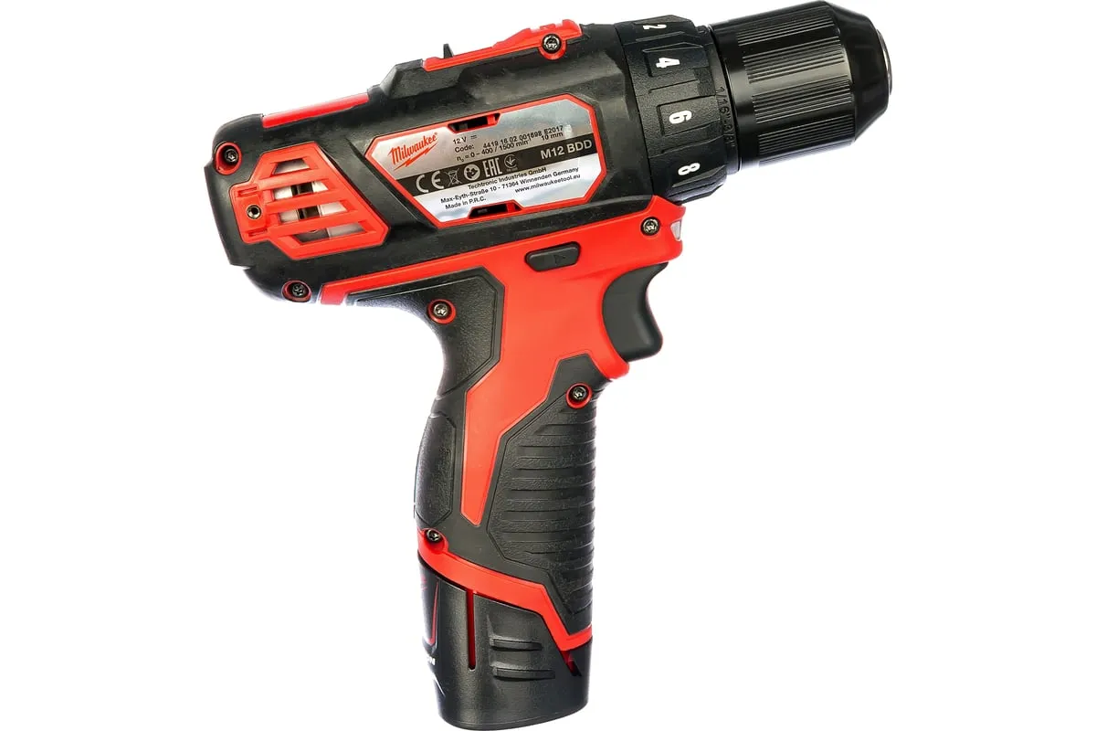 Аккумуляторная дрель-шуруповерт Milwaukee M12 BDD-202С 4933441915 имеет специальную клипсу, которая позволяет крепить инструмент на пояс. Данная дрель отлично подходит для работ в ограниченном пространстве. На корпусе двигателя предусмотрены индикатор заряда батареи и светодиодная подсветка, что обеспечивает удобство в использовании. Металлический патрон 10 мм позволяет быстро произвести замену бит, что исключает простой в работе.