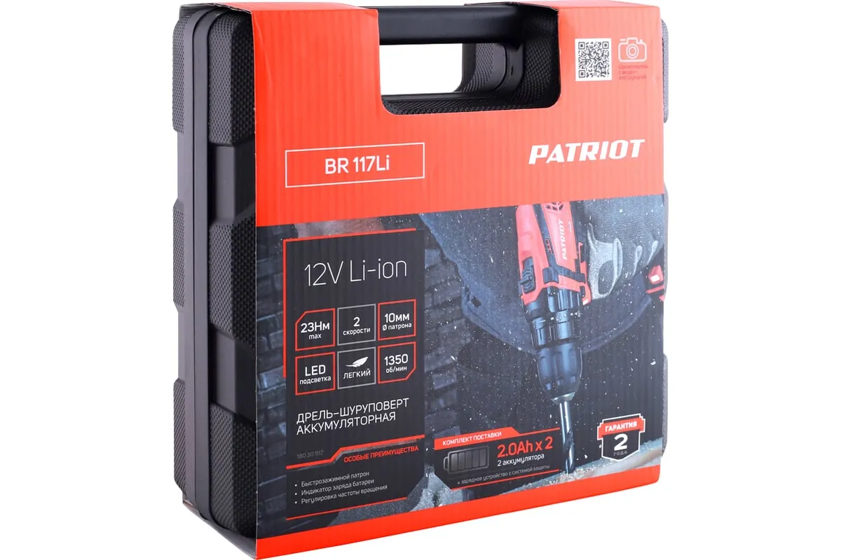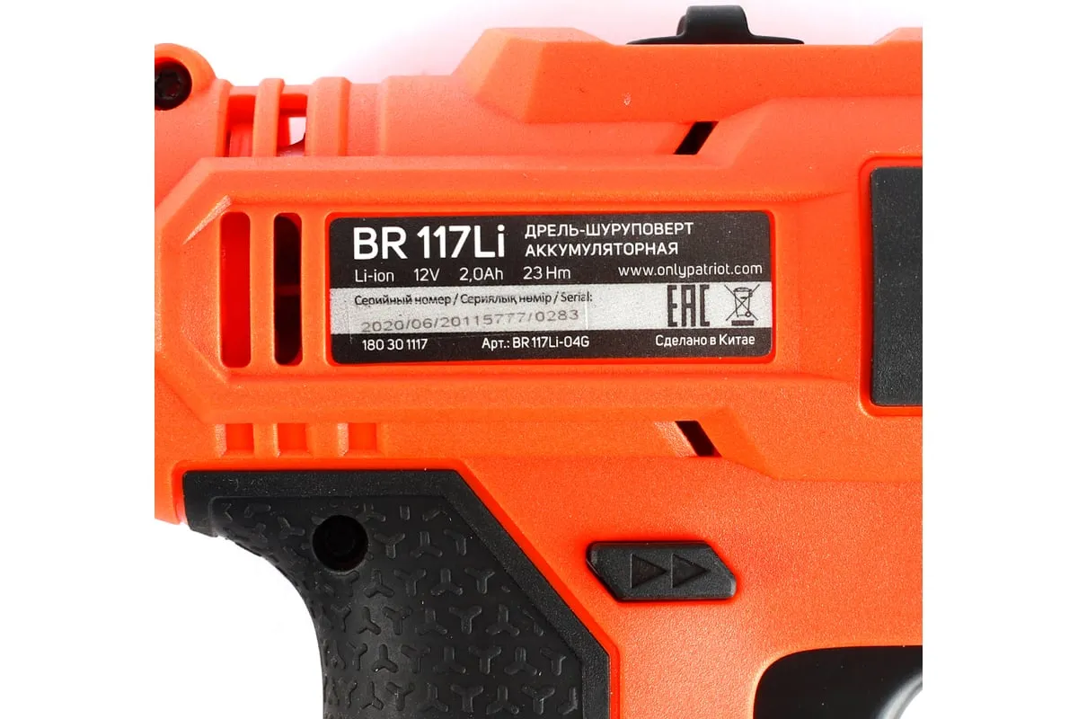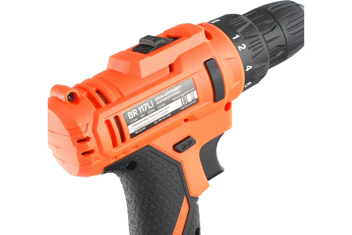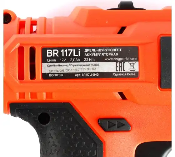 Аккумуляторная дрель-шуруповерт PATRIOT BR 117Li 180301117 оснащен одномуфтовым патроном с большим усилием зажима.