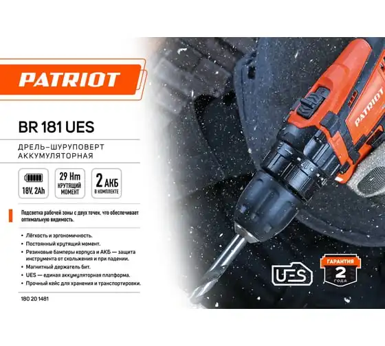 Аккумуляторная дрель-шуруповерт PATRIOT BR 181 UES подходит для выполнения широкого спектра задач, как для домашних дел, так и для работы в мастерской. С ее помощью легко просверлить отверстия в металле, пластике, древесине или мдф, а также для работы с крепежом, даже больших диаметров.