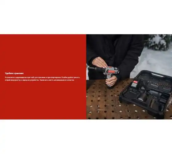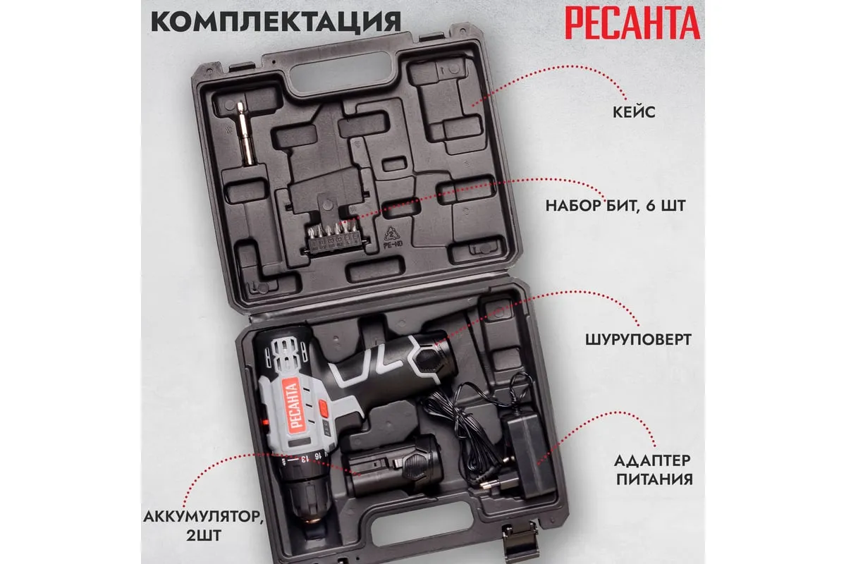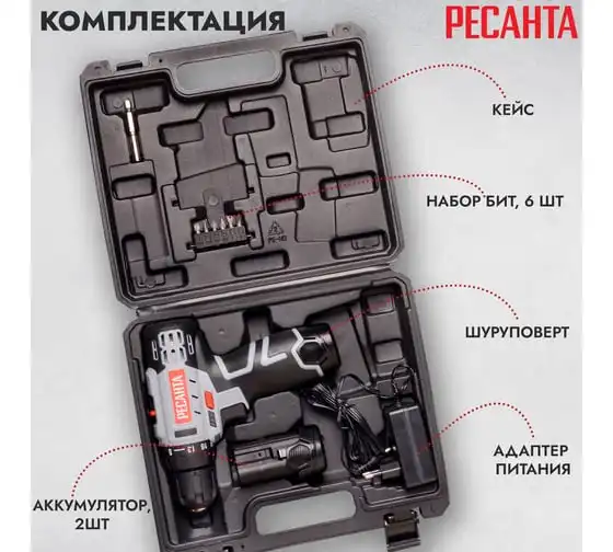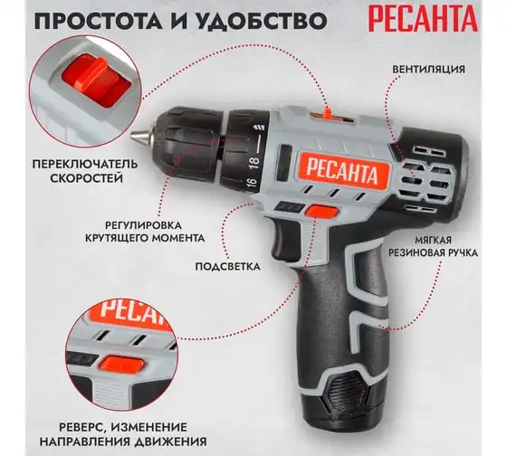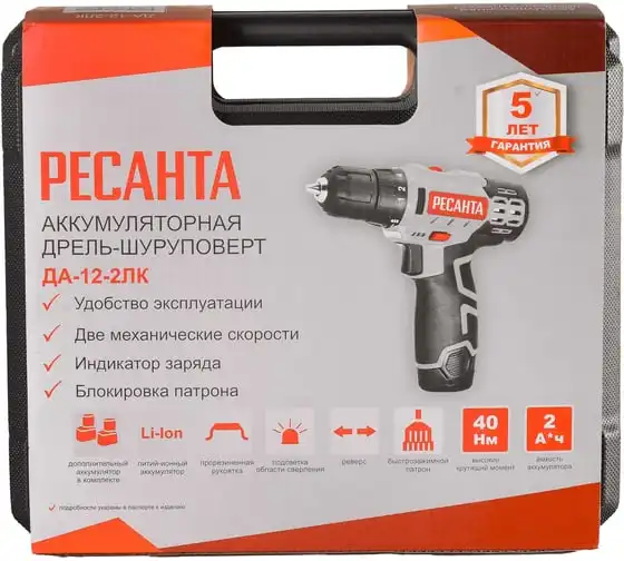 Дрель-шуруповерт Ресанта ДА-12-2ЛК отличается удобством в использовании благодаря прорезиненной рукоятке. Подсветка рабочей зоны обеспечивает точность выполняемых работ при слабом освещении. Самая базовая по мощности модель имеет компактные размеры и малый вес 0,96 кг. Помимо зарядного устройства и набора из 6 бит в комплектацию входит адаптер-удлинитель для бит, позволяющий использовать инструмент в труднодоступных местах. Прочный пластиковый кейс предназначен для безопасного хранения и транспортировки.