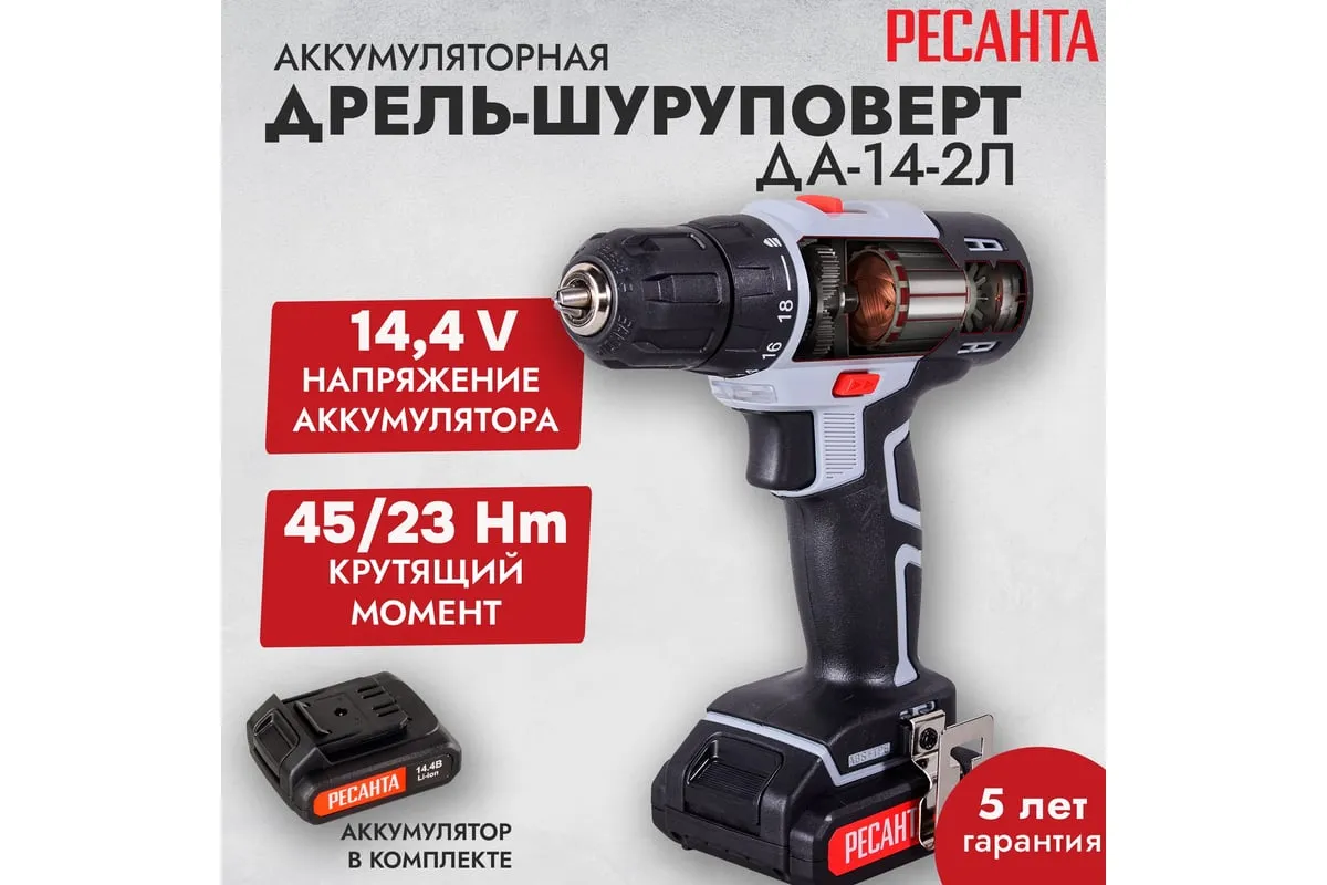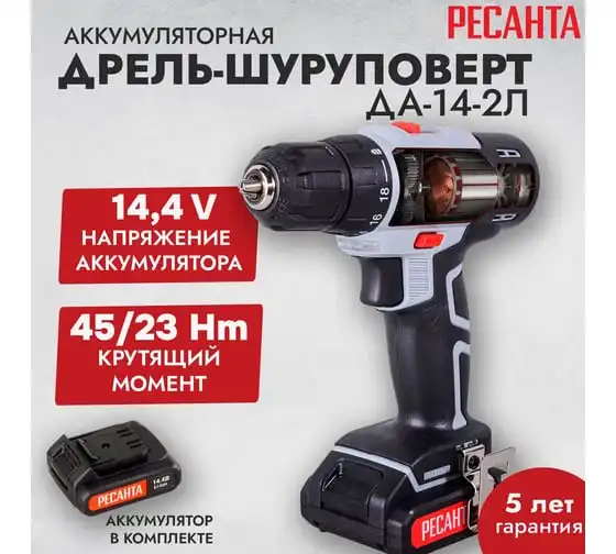 Дрель-шуруповерт Ресанта ДА-14-2Л станет отличным помощником для мужчины. Домашнюю работу будет выполнять намного легче. А на небольшой строительной площадке такое устройство подойдет для простых строительных задач.