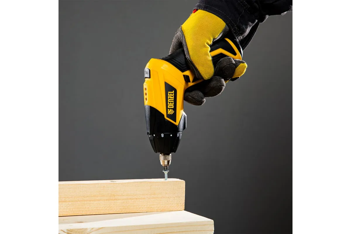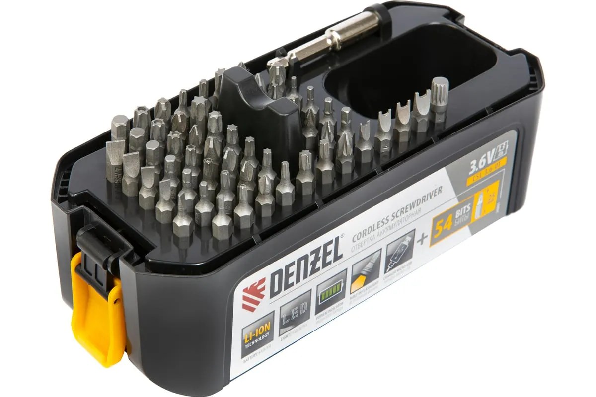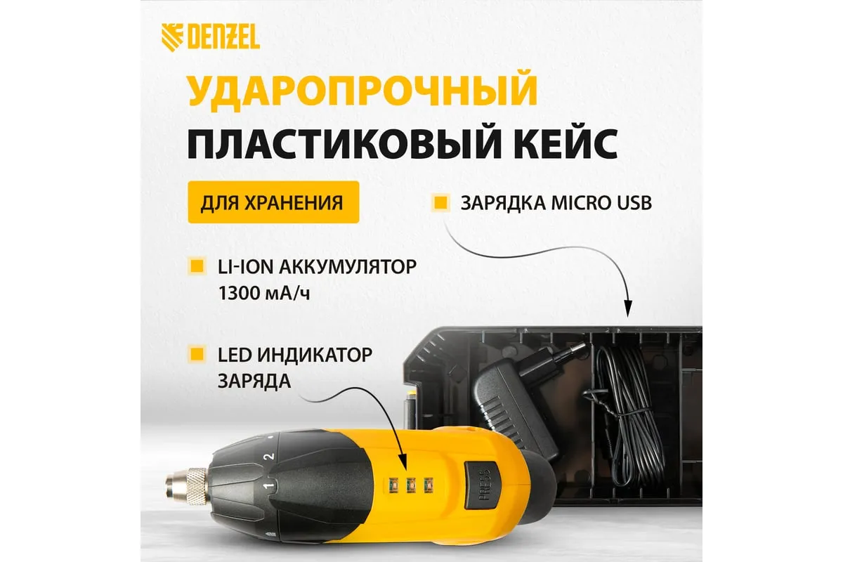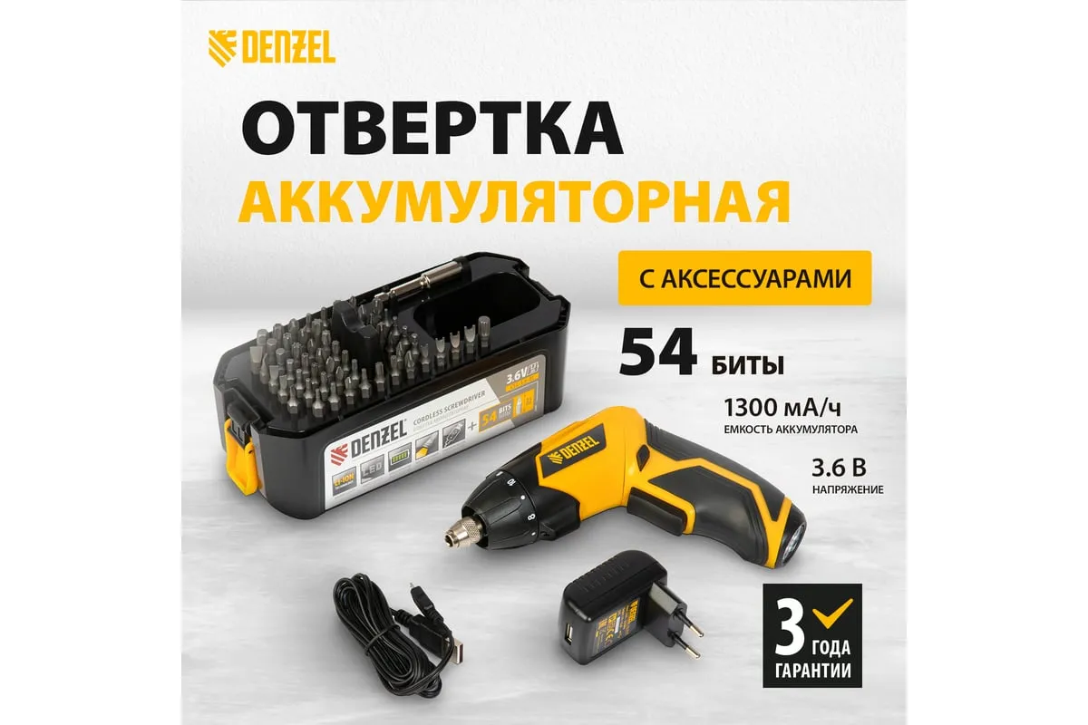 Аккумуляторная отвертка Denzel CSL-3,6-01 используется для работы с саморезами, шурупами и винтами при монтажных работах. Поворотная обрезиненная рукоятка позволяет работать в труднодоступных местах.