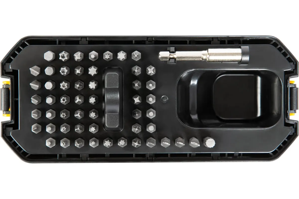 В комплекте идет набор из 54 бит, что позволяет приступить к работе сразу без необходимости покупки дополнительной оснастки.