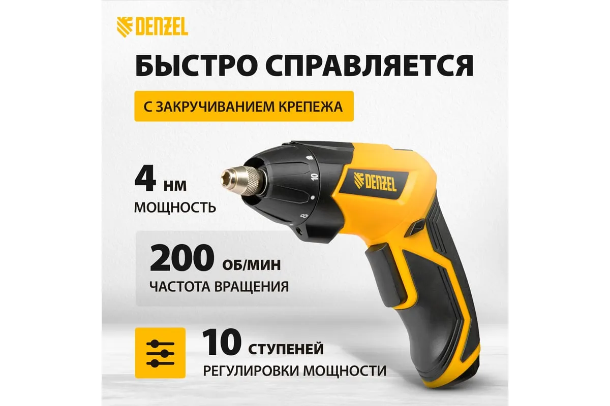 Благодаря мощности 3,6 Вт, максимальному крутящему моменту 4 Нм и частоте вращения 200 об/мин быстро справляется с закручиванием крепежа.