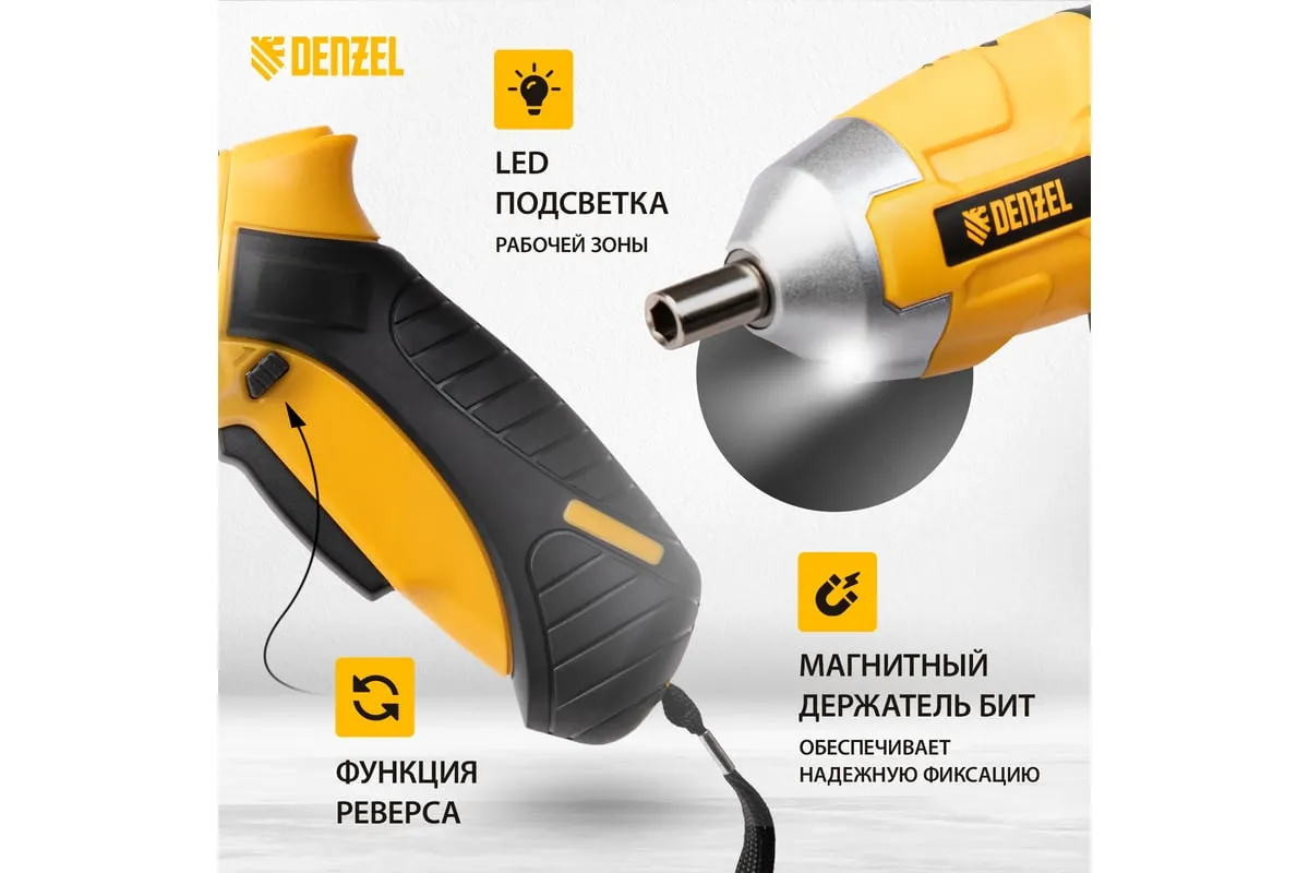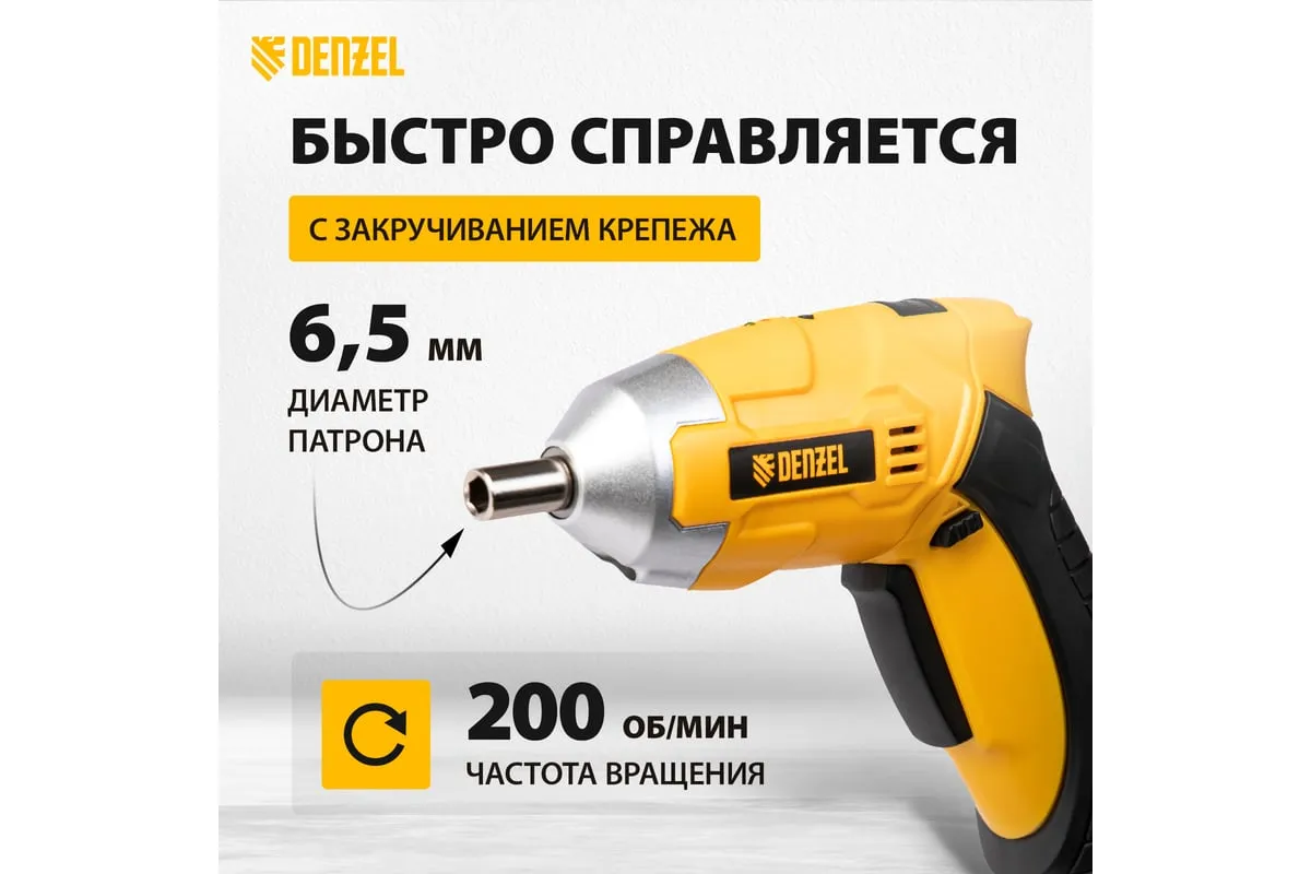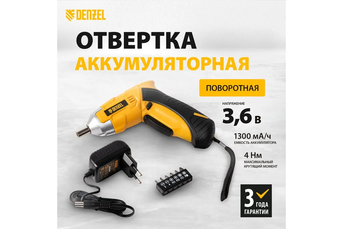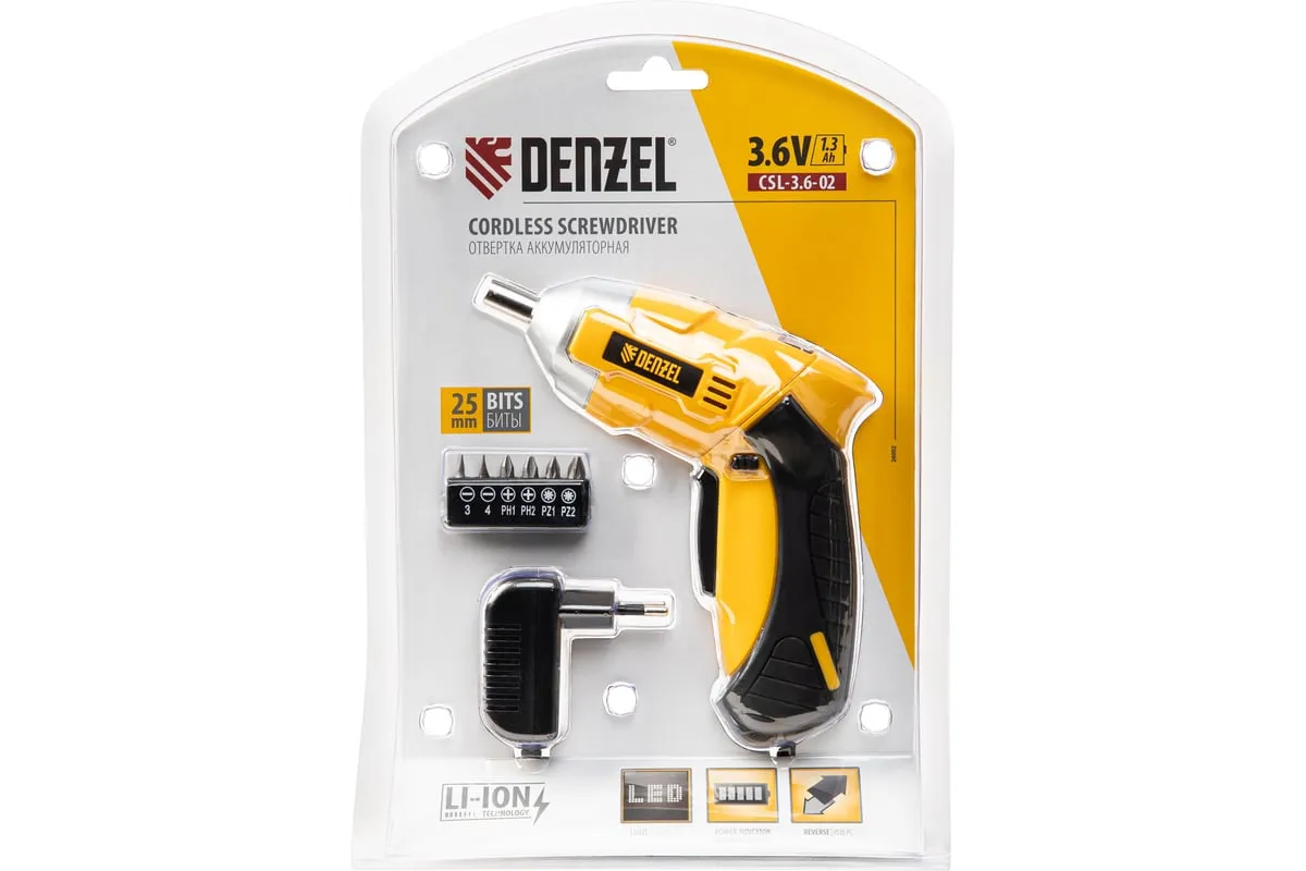 Аккумуляторная отвертка Denzel CSL-3,6-02 26002 работает от источника питания Li-Ion 1,3 Ач напряжением 3,6 В, поставляется в блистере. Предназначена для быстрого закручивания и откручивания шурупов, болтов и саморезов. Отвертка развивает крутящий момент до 4 Нм и частоту вращения патрона 200 об/мин, что позволяет легко и без усилий решать поставленные задачи.