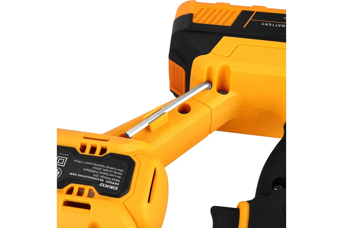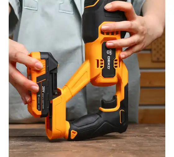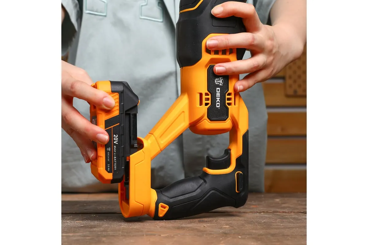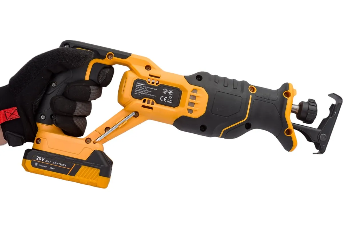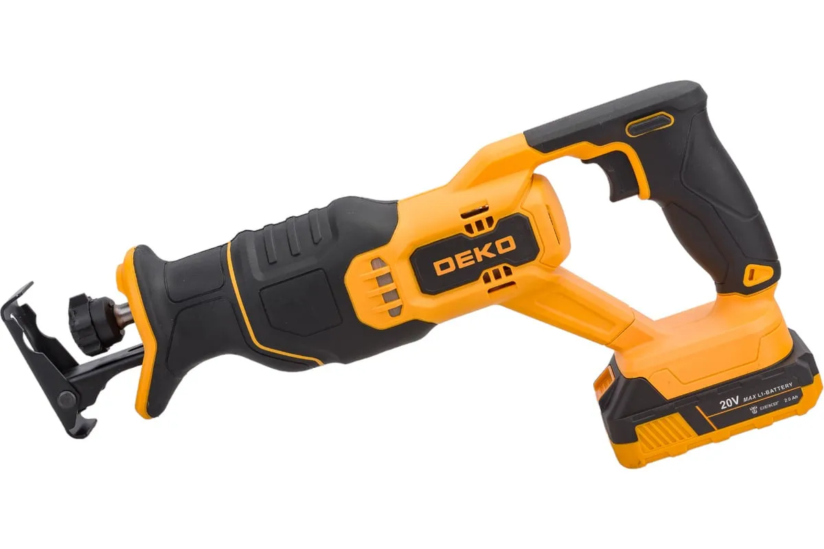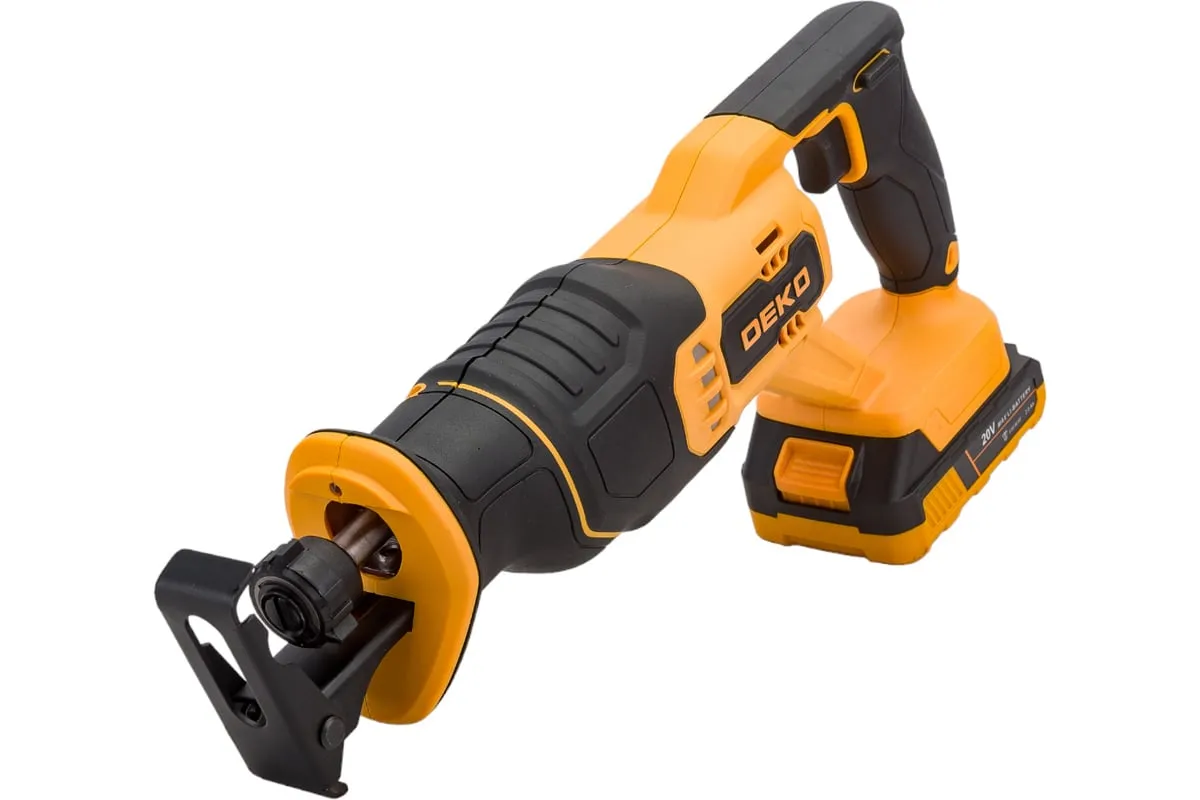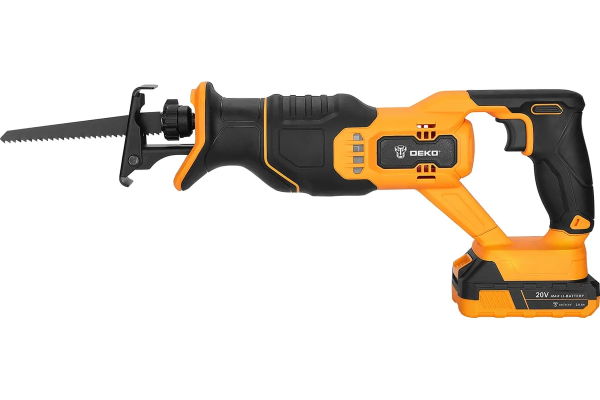 Аккумуляторная сабельная пила DEKO DKRS20, 20 В, 2х2.0 Ач 063-4253 предназначена для распила древесины, металла и прочих строительных материалов.