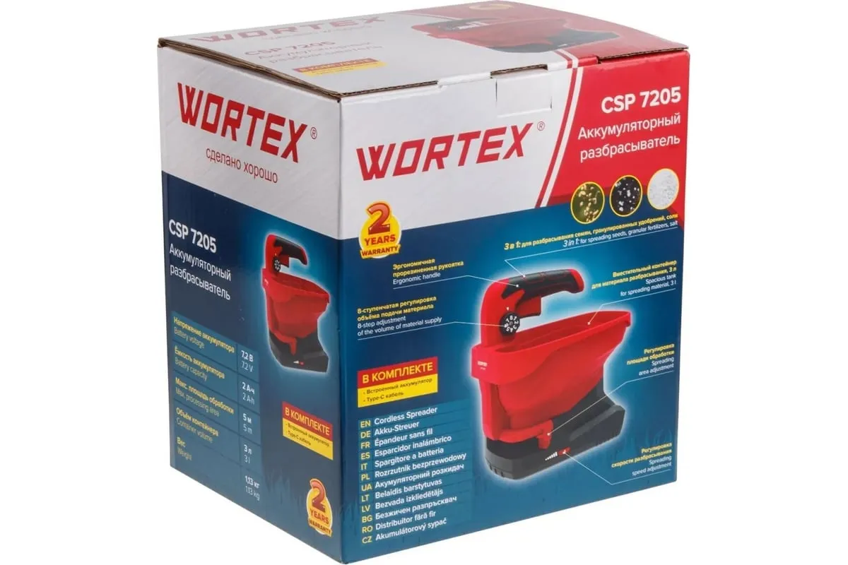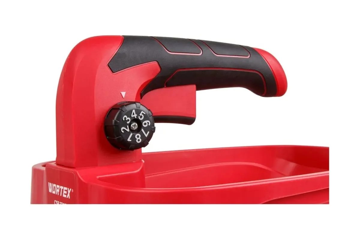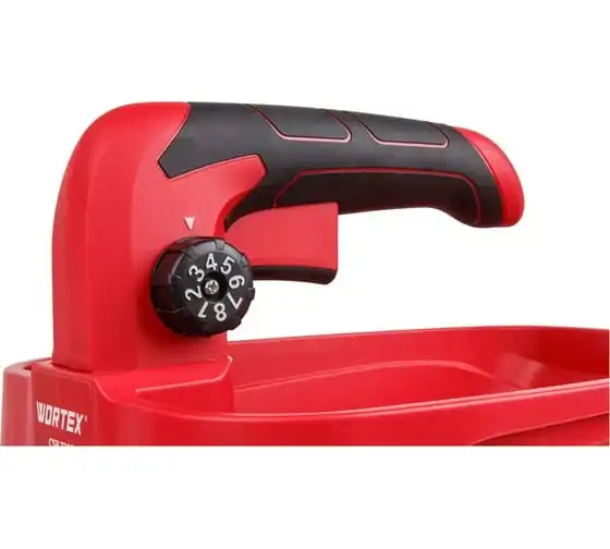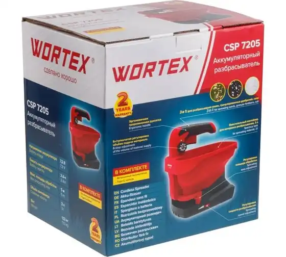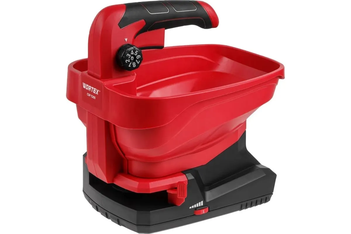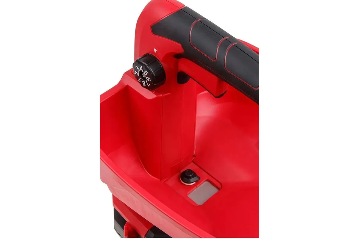 Инструмент оснащен функциями регулировки скорости разбрасывания (6 ступеней), ширины обработки поверхности и объёма подачи разбрасываемого материала (8 ступеней).