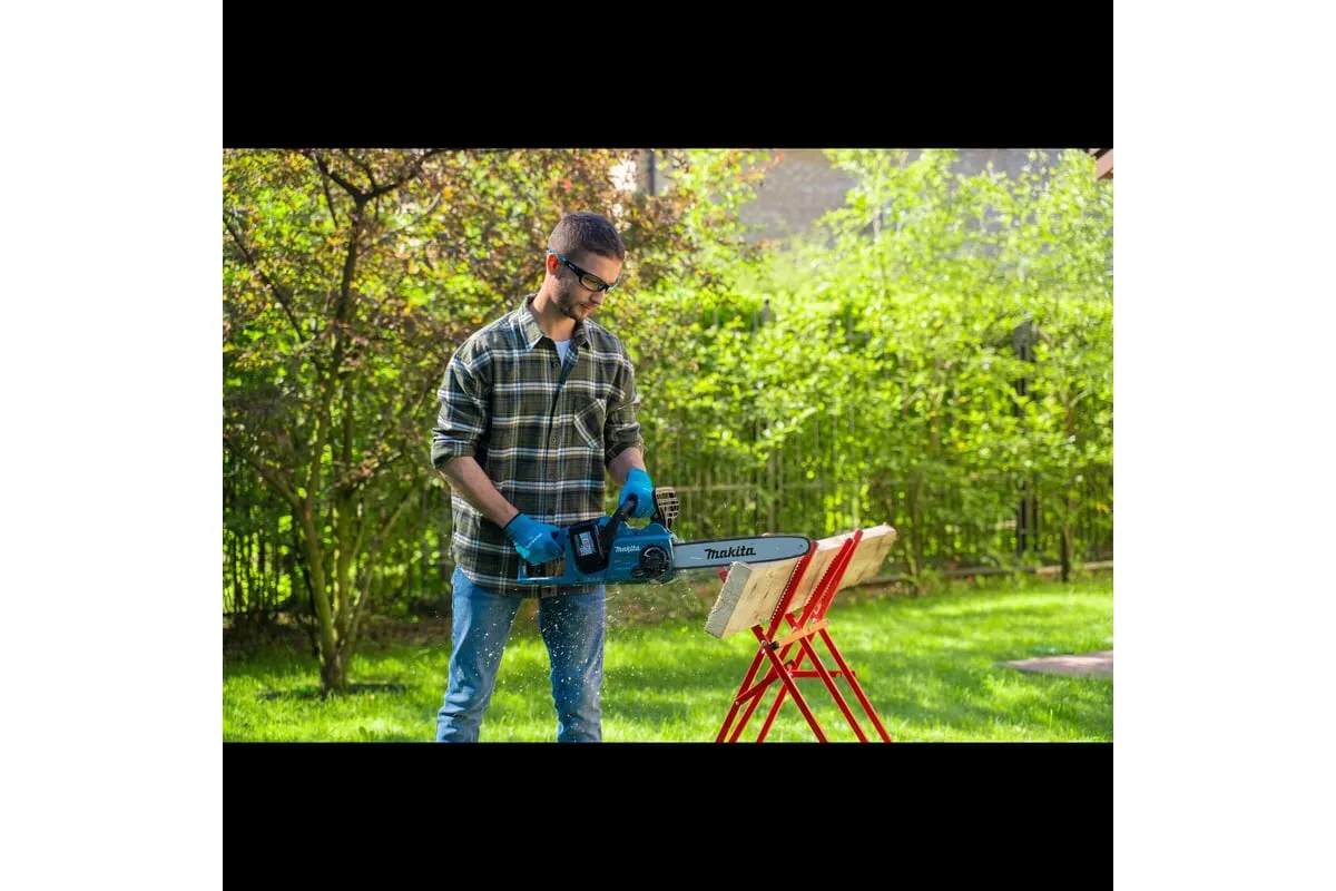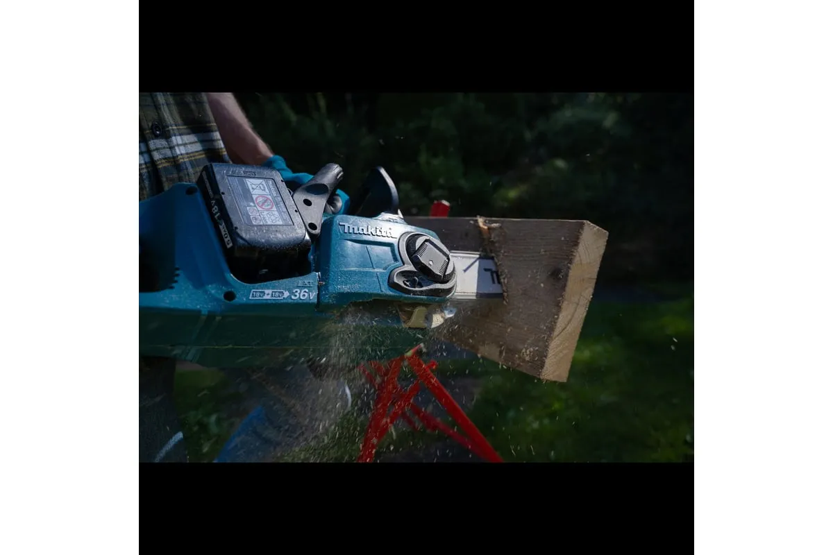 Аккумуляторная цепная пила Makita DUC353Z - забудьте о приготовлении топливной смеси и сервисе. Просто установите аккумуляторы и приступайте к работе. Данная модель оснащена мощным бесщеточным двигателем, который выдает максимальную мощность 1 100 Вт. Максимальная скорость цепи составляет 20 м/с. Безынструментальная крышка сцепления позволит быстро подтянуть провисшую цепь или заменить режущую гарнитуру. Металлический упор позволит сделать ровный срез, а металлический цепеуловитель защитит Вас, если цепочка порвется. Инерционный тормоз остановит цепь за доли секунды. Цепная пила работает на аккумуляторной платформе LXT. Данный тип аккумулятора подходит более чем для 300 инструментов Makita из линейки LXT, а это значит, что его можно использовать не только с садовым инструментом, но и с шуруповертами и перфораторами Makita.