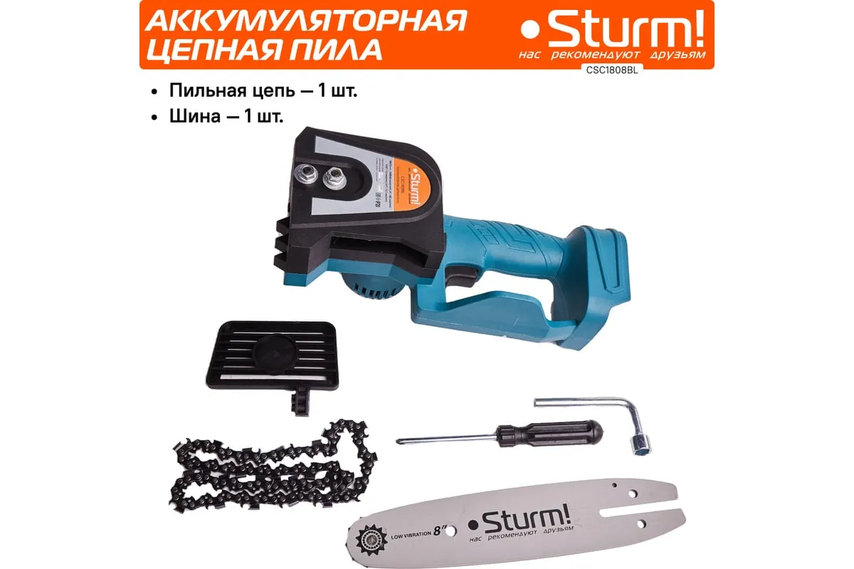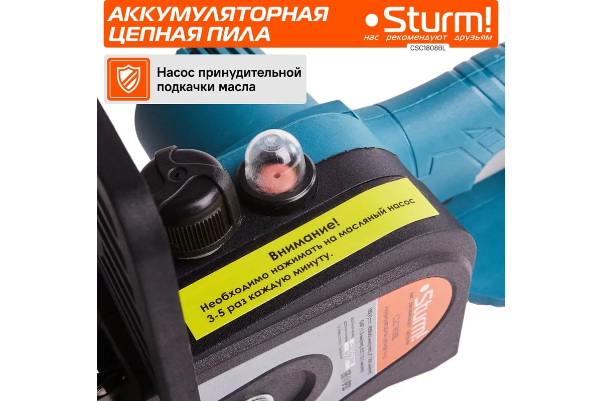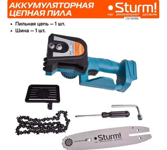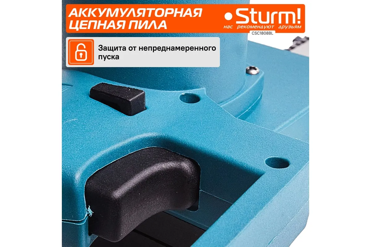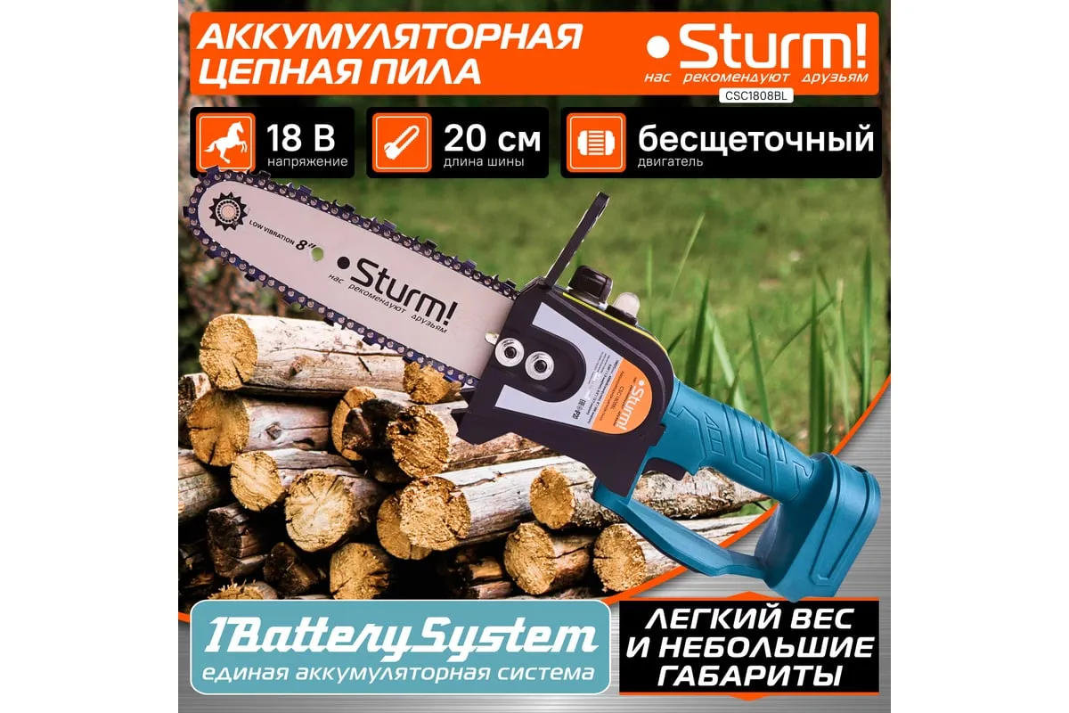Аккумуляторная цепная пила Sturm CSC1808BL подходит для работы с древесиной.