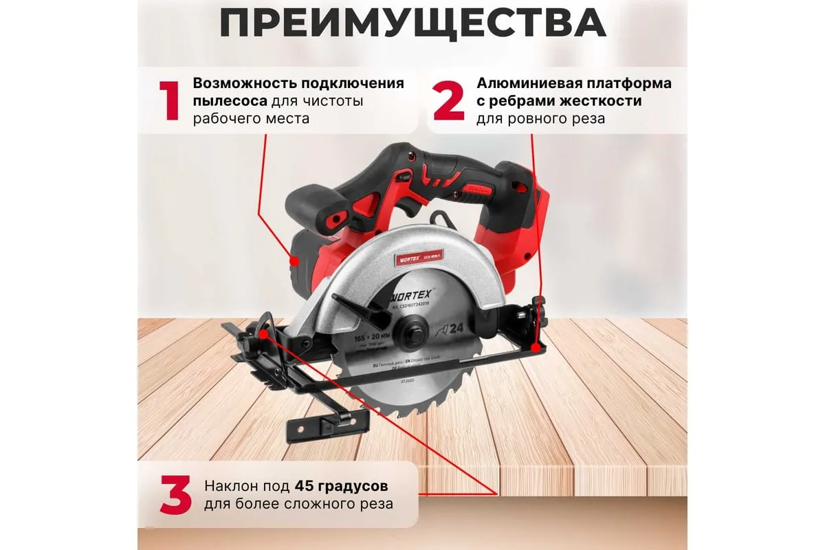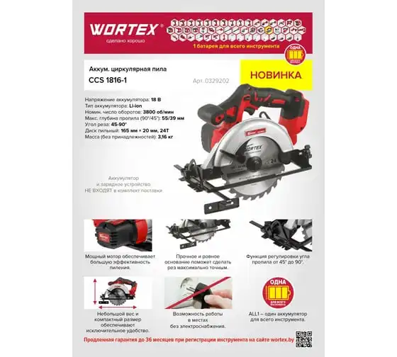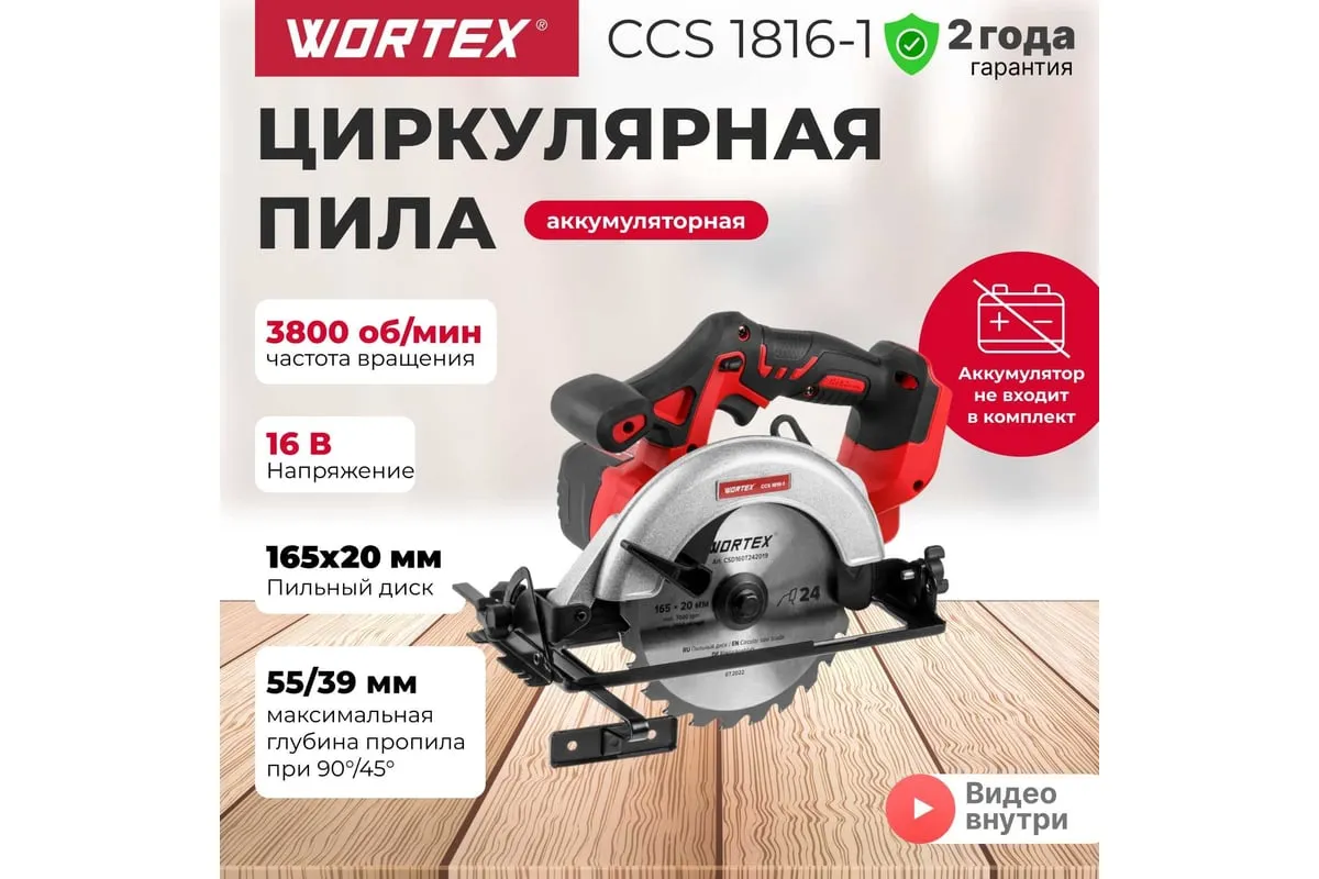 Циркулярная аккумуляторная пила WORTEX CCS 1816-1 ALL1 0329202 имеет небольшой вес, поэтому с ней легко и комфортно работать.