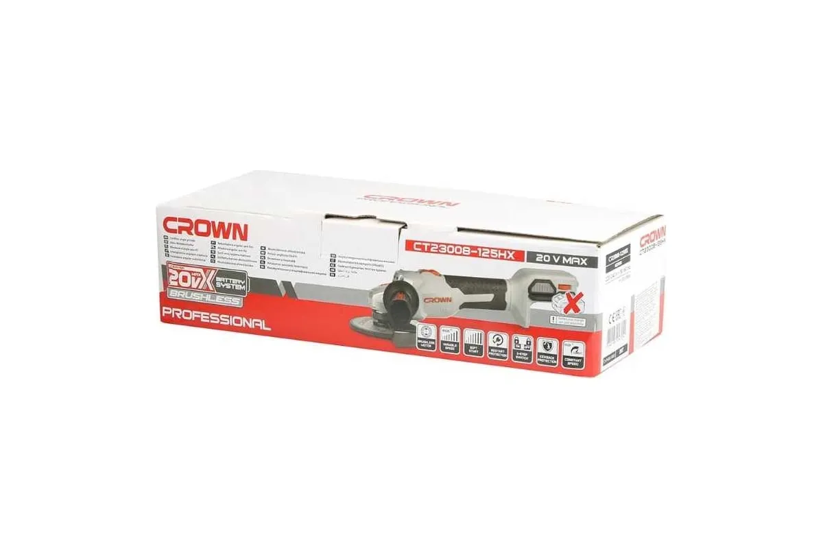 Аккумуляторная болгарка CROWN CT23008-125HX входит в линейку B3+ - серия под один аккумулятор.