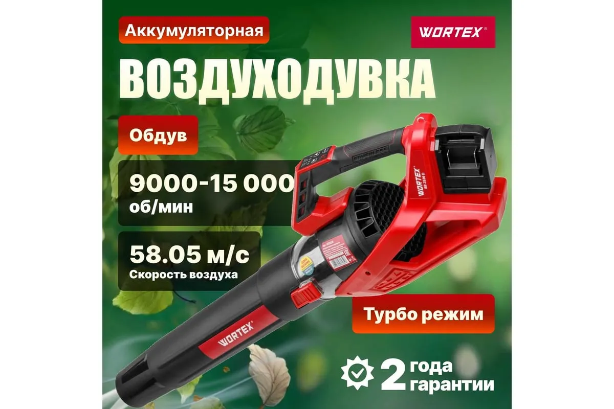 Аккумуляторная воздуходувка WORTEX BB 2536 D ALL1 0333234 предназначена для сметания опавшей листвы, мелких веток, бумаги, а также другого мусора, который может находиться в саду, в одну кучу.