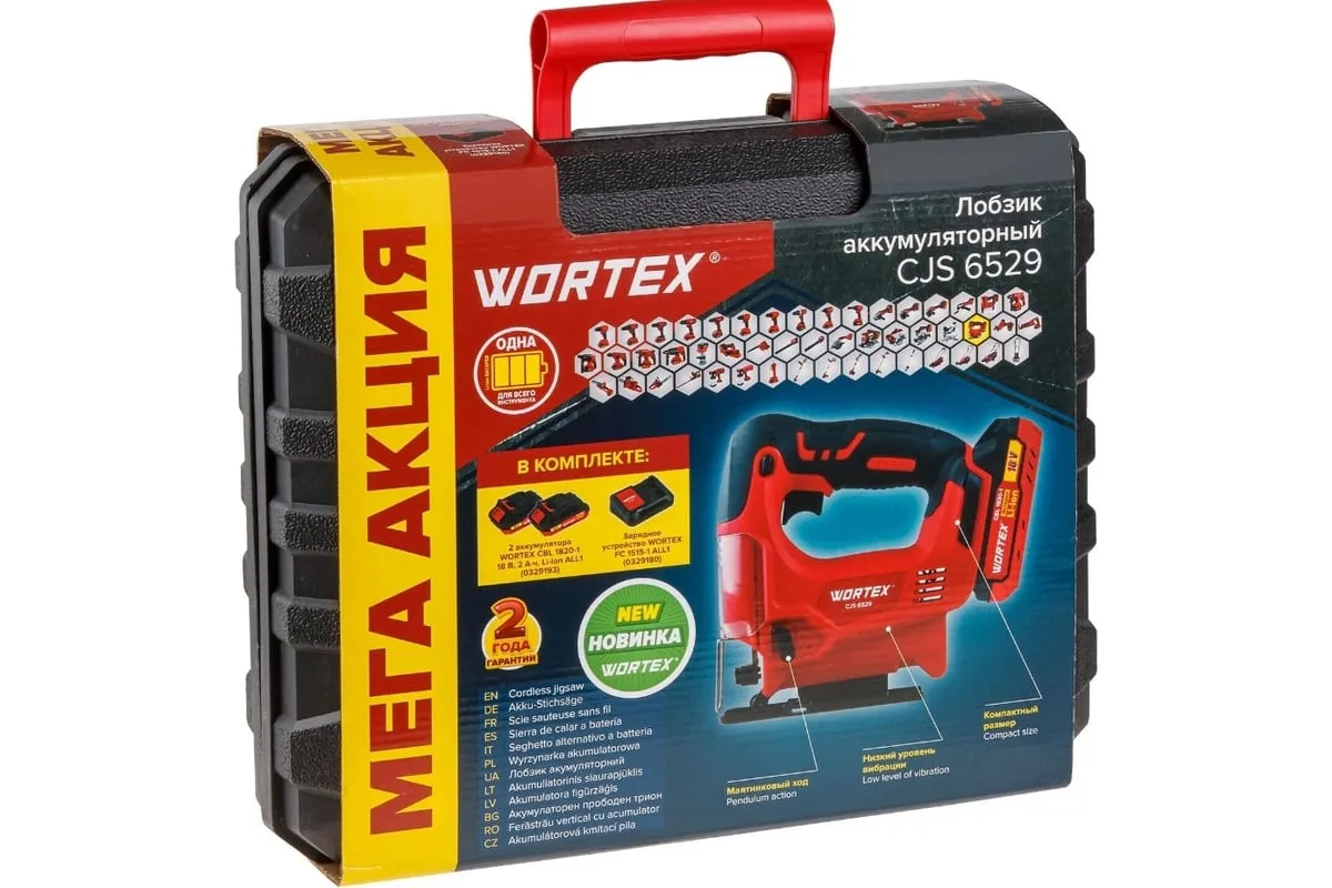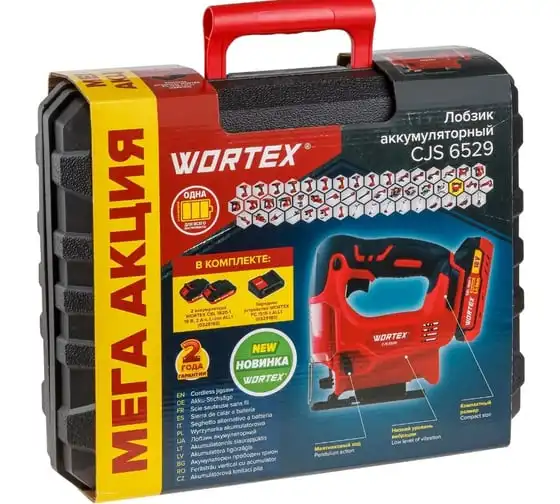 Лобзик оснащен удобной, эргономичной рукояткой, отличается пониженным уровнем вибрации, возможностью использования в местах без электроснабжения. Наличие маятникового движения с направляющим роликом позволяет производить быстрые и при этом ровные пропилы. Возможно подключение пылесоса. Регулировка скорости позволяет использовать лобзик для реза различных материалов. Лобзик поставляется в комплекте с двумя аккумуляторами и зарядным устройством в пластиковом кейсе, что обеспечивает бесперебойную работу инструмента, а так же облегчает его транспортировку и хранение.