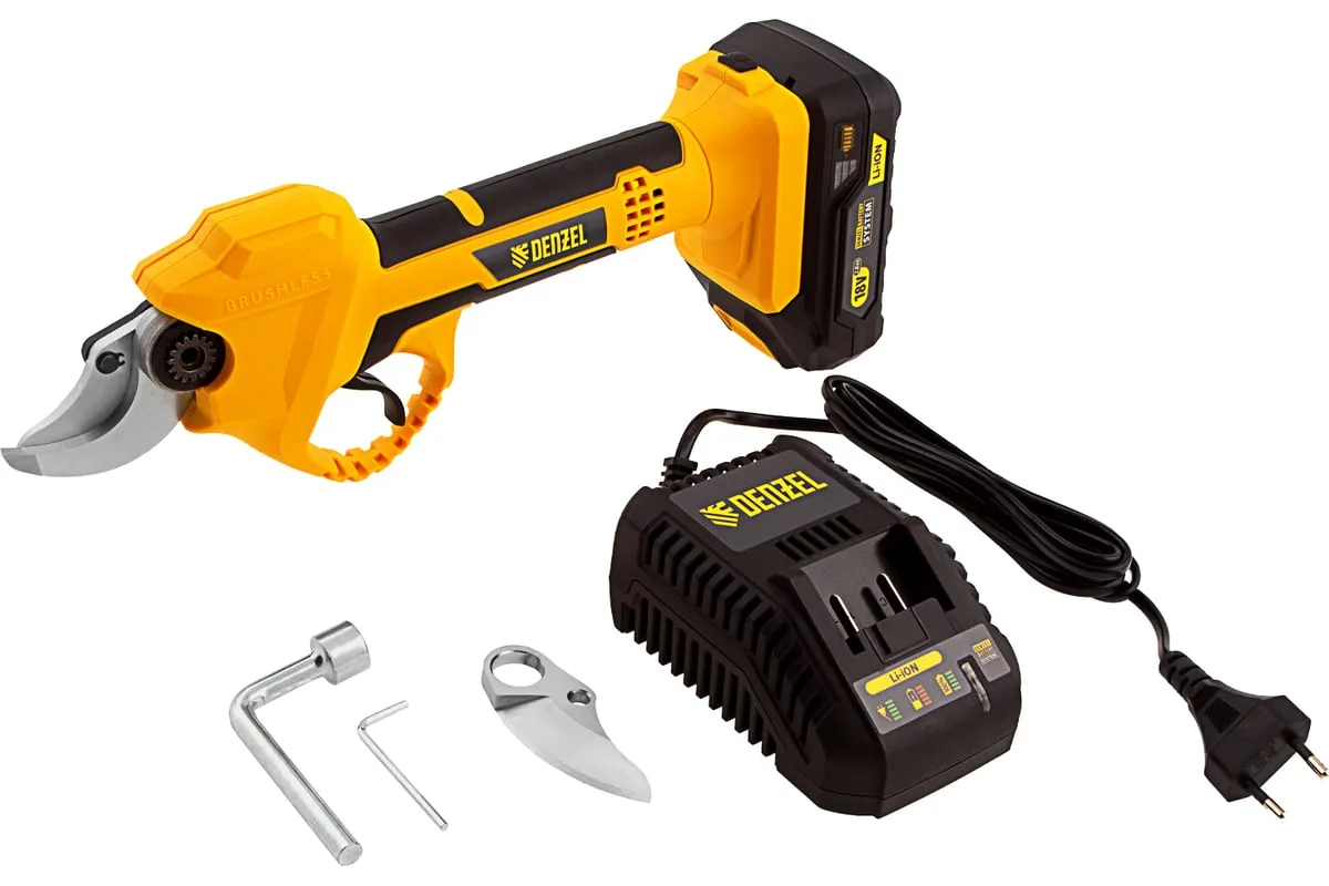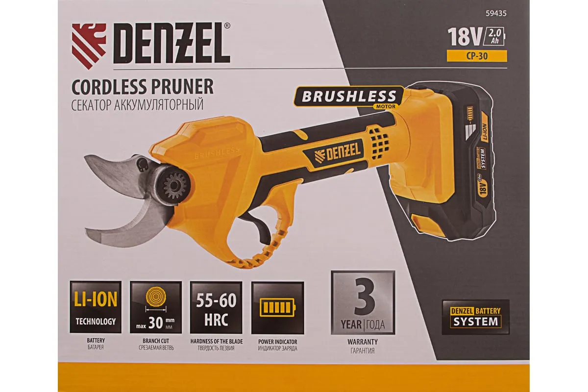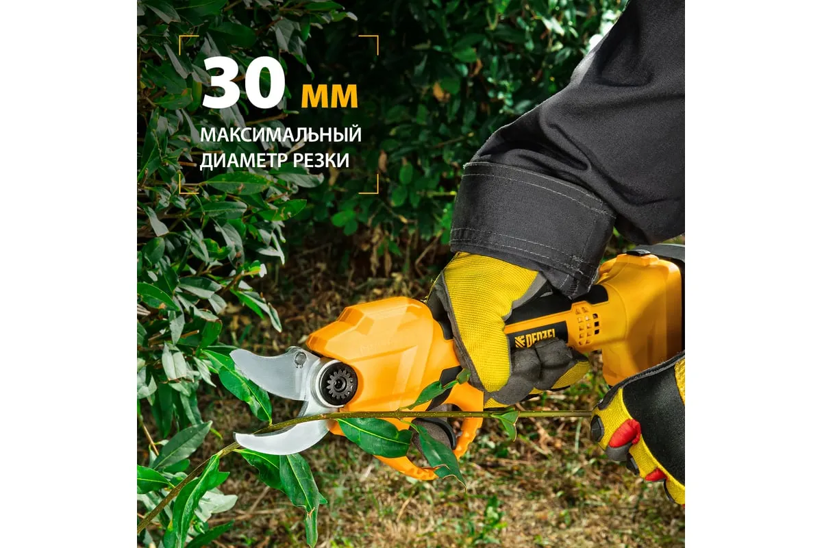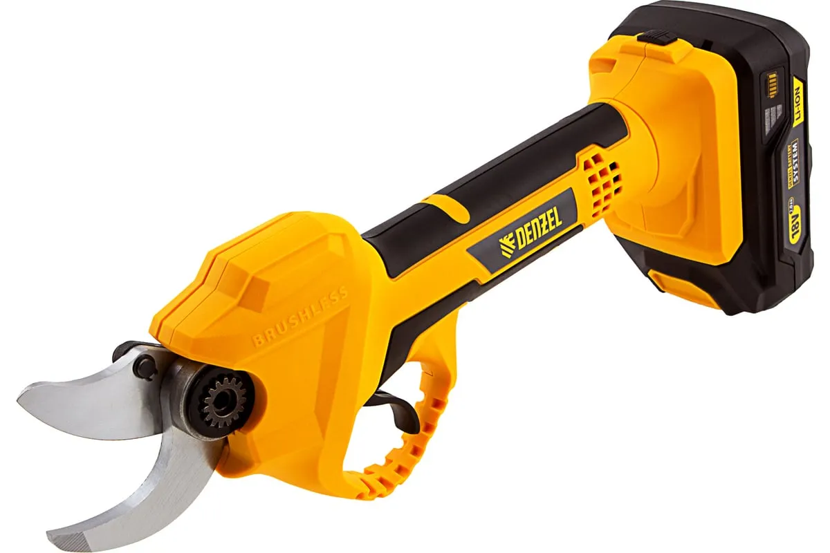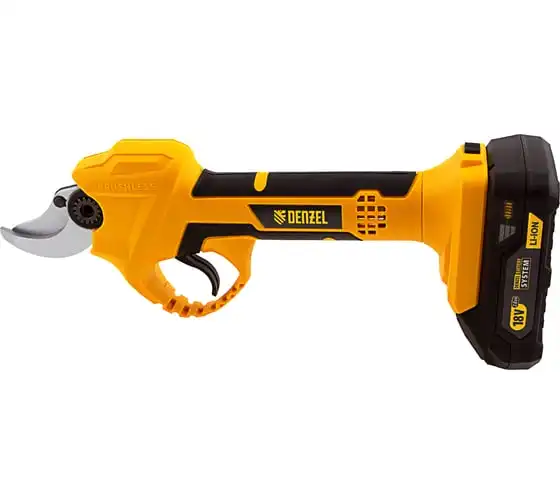 Аккумуляторный секатор Denzel CP-30 18 В 59435 используются для ухода за садовыми деревьями и кустарниками.