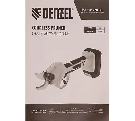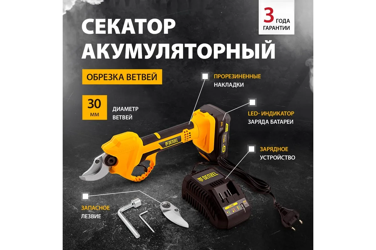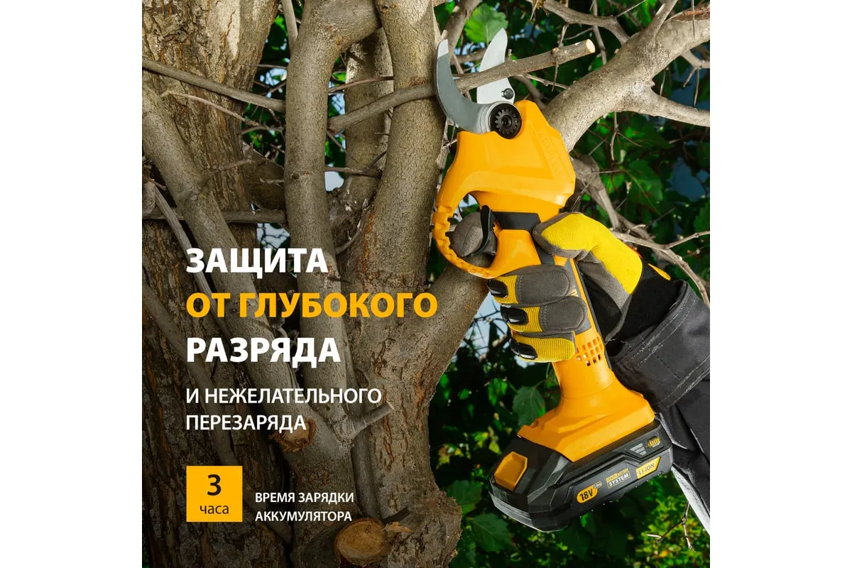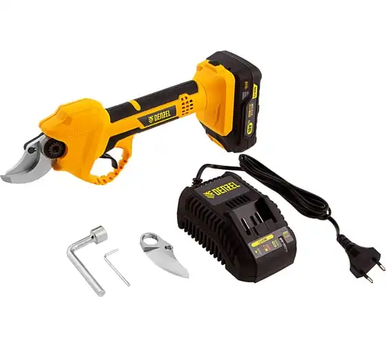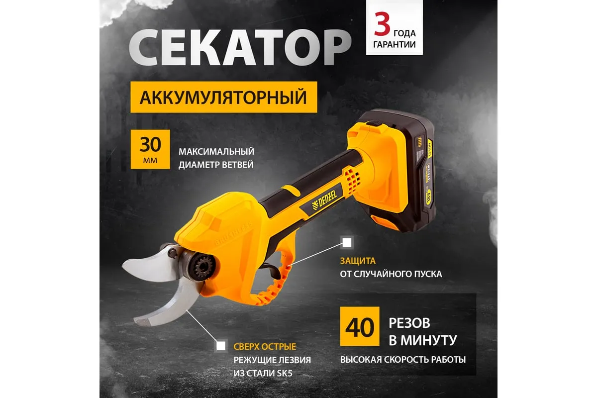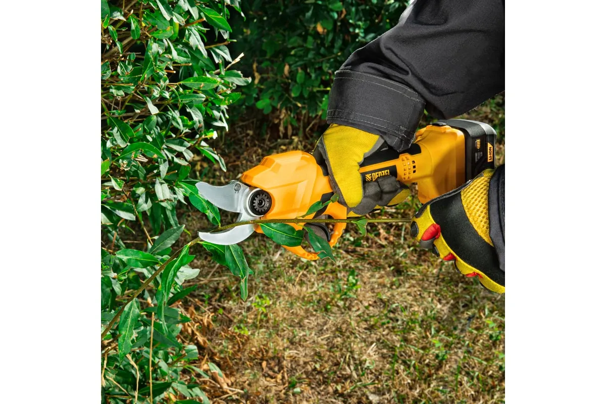 Аккумуляторный секатор Denzel CP-30 18 В 59435 используются для ухода за садовыми деревьями и кустарниками.