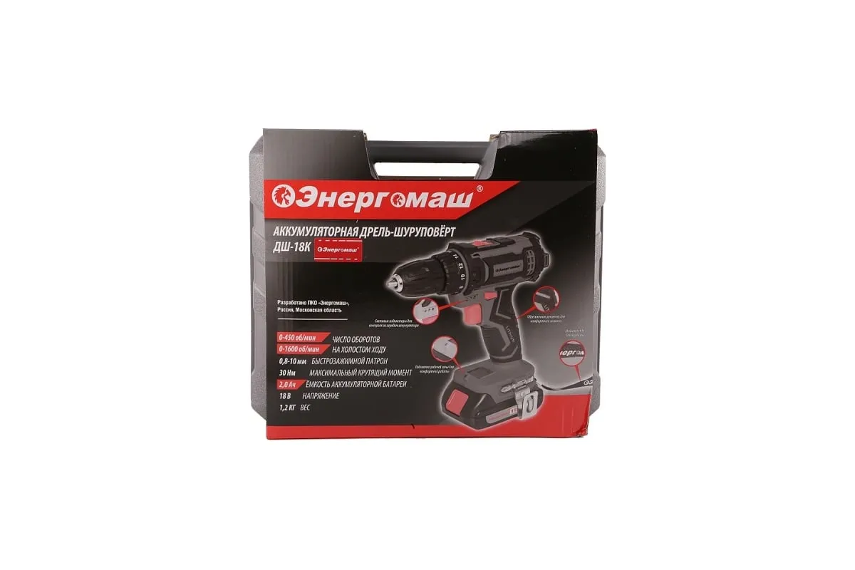 Энергомаш ДШ-18К — аккумуляторный 18-вольтовый двухскоростной шуруповерт бытового назначения. Является частью линейки 1Battery System, обеспечивающей совместимость одного и того же аккумулятора с целым рядом наименований инструмента.