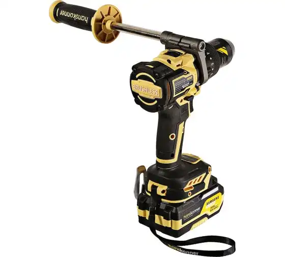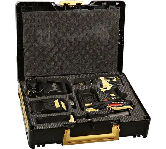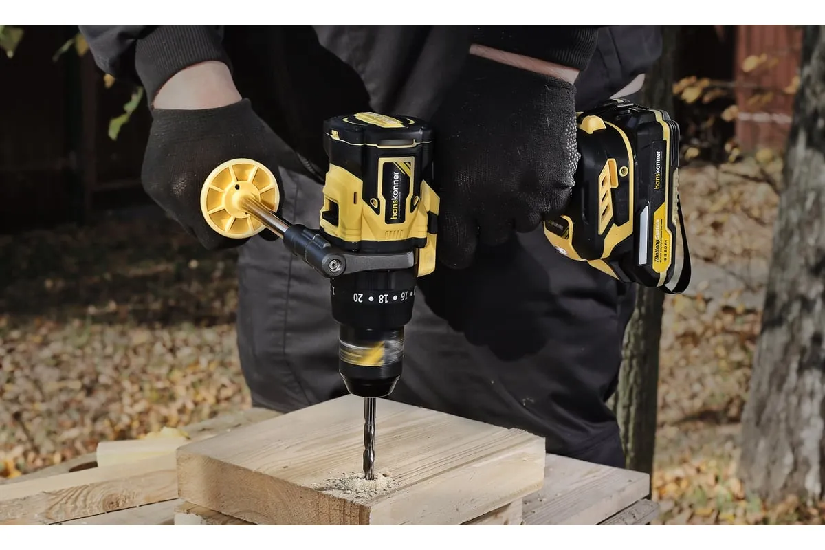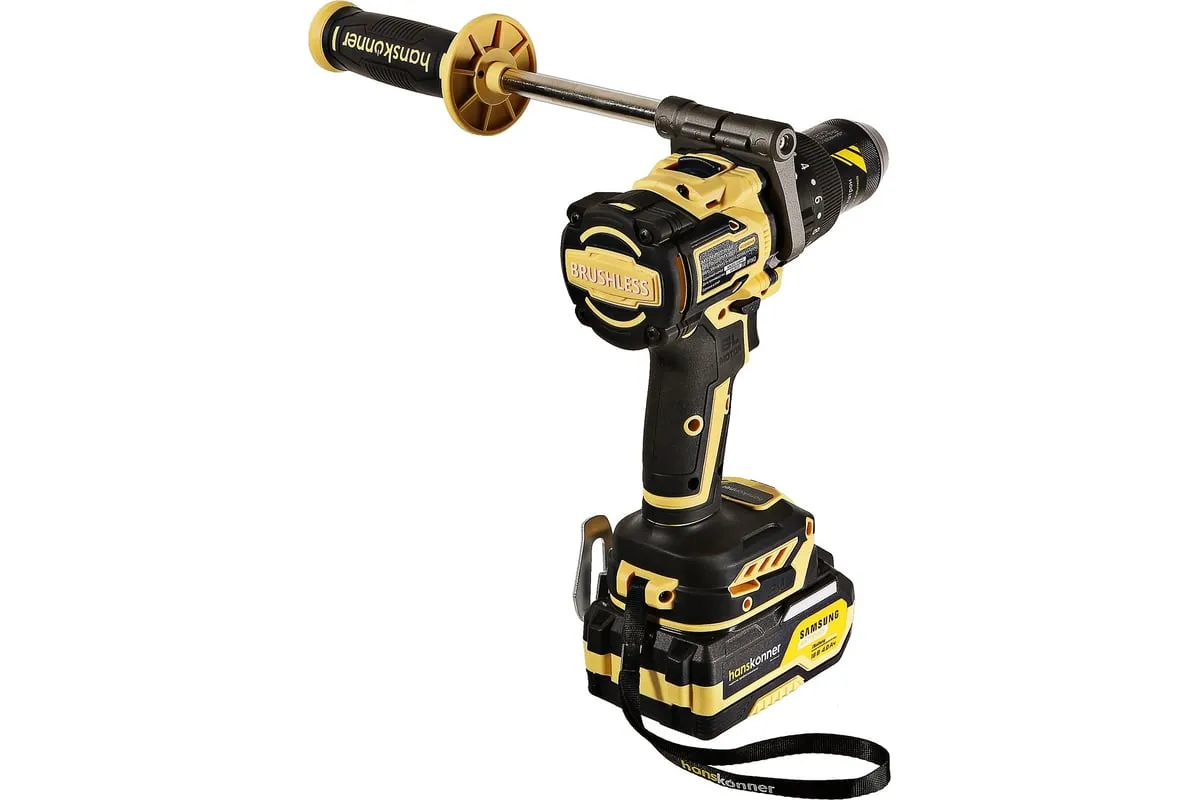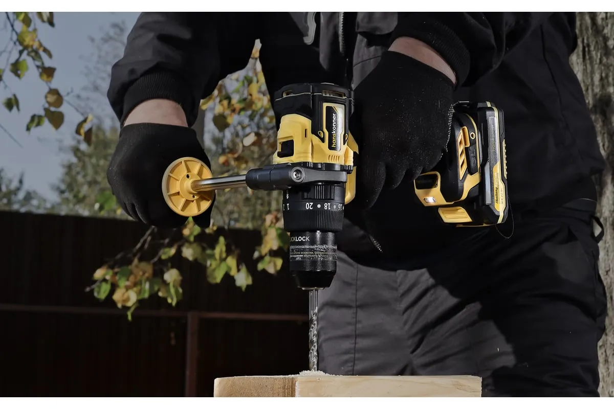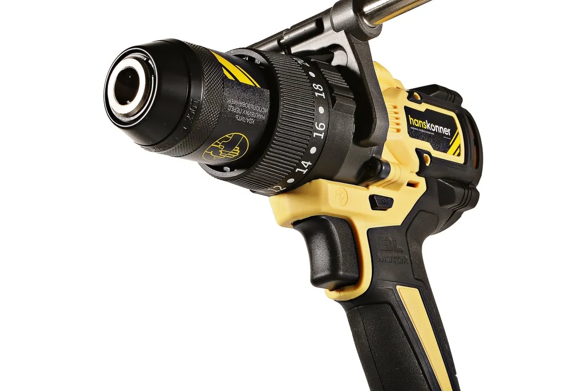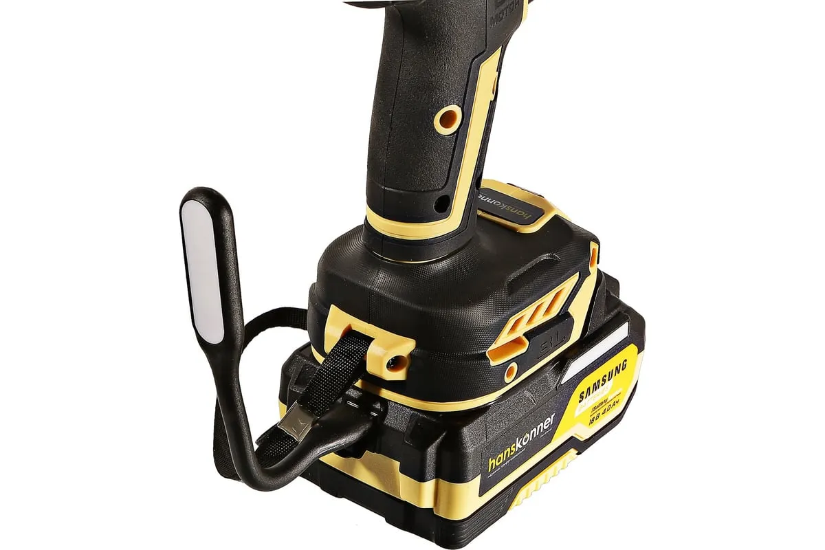 Аккумуляторная ударная дрель-шуруповерт Hanskonner подходит для любых работ, в том числе в стесненных условиях и труднодоступных местах без снижения производительности и потери качества работ. Мощный крутящий момент 165 Н·м позволяет использовать инструмент в 5 полноценных функциях: шуруповерт, ударная дрель, низкооборотистая дрель, ледобур, миксер. Компактный и легкий бесщеточный двигатель имеет выгодные параметры работы: Усиленный цельнометаллический патрон с диаметром захвата 13мм расширяет применение оснастки для выполнения работ с повышенной нагрузкой. 20 ступеней крутящего момента, режим сверления и режим сверления с ударом позволяют устанавливать любой крепеж без его повреждения и вдавливания в материал. Данная модель является частью системы 1BatterySystem и совместима со всей линейкой аккумуляторного инструмента. Два Li-Ion аккумулятора SAMSUNG емкостью 2.0 Ач и 4.0 Ач с увеличенным в 2 раза ресурсом работы.