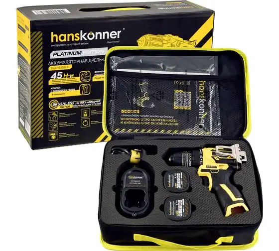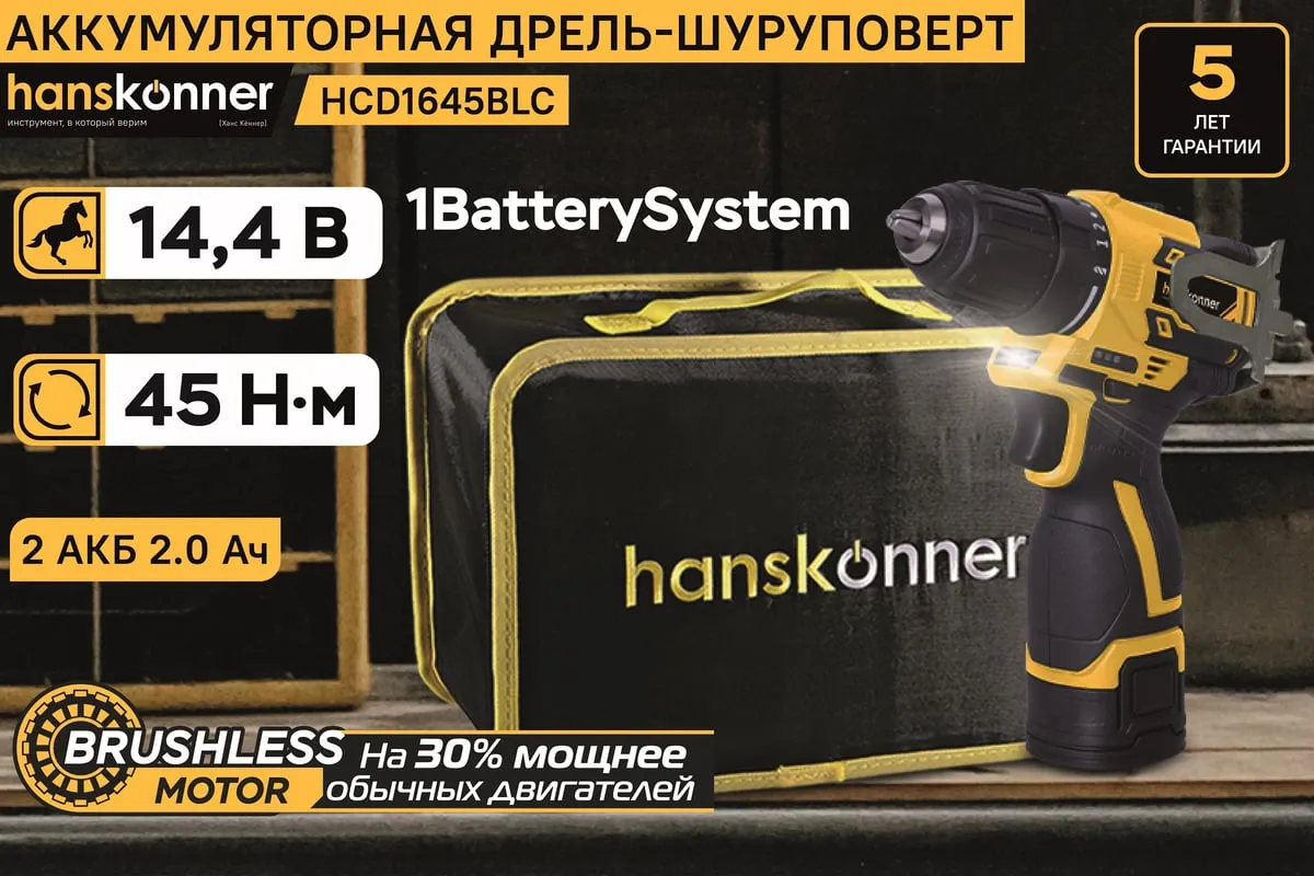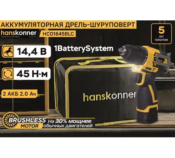 Аккумуляторная дрель-шуруповерт Hanskonner HCD1645BLC с бесщеточным двигателем — одна из самых мощных и компактных в своем классе. Одномуфтовый быстрозажимной пластиковый патрон ClickLock позволяет менять оснастку одной рукой. 20 ступеней регулировки усилия затяжки позволяют работать с самыми мягкими и деликатными материалами. Фирменные подшипники C&U увеличивают ресурс работы инструмента на 50%. Для комфортной работы, а также для работы в слабоосвещенных местах, на шуруповерте сделана яркая светодиодная подсветка. Индикатор заряда аккумулятора позволит постоянно контролировать уровень заряда и не начинать работу с разряженным аккумулятором. Специальная скоба с возможностью установки как справа, так и слева позволит повесить шуруповерт на поясе, чтобы он постоянно находился «под рукой». Шуруповерт поставляется с двумя сменными аккумуляторами 2.0 Ач и зарядным устройством в сумке-кейсе.