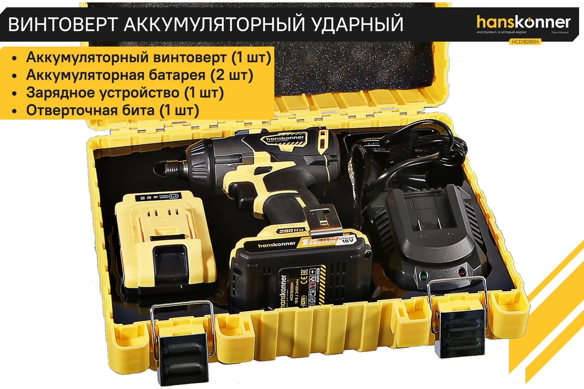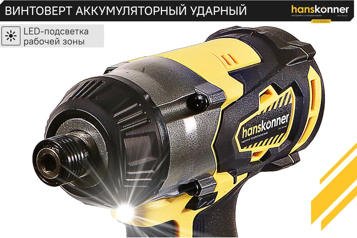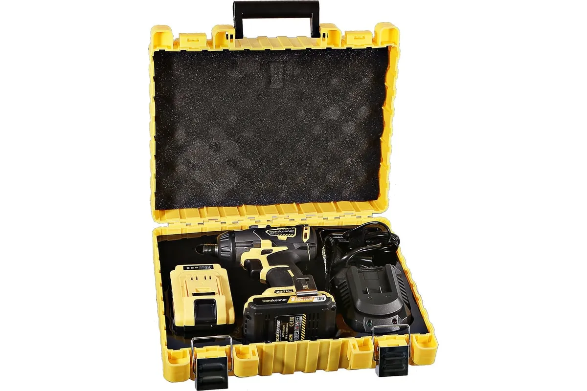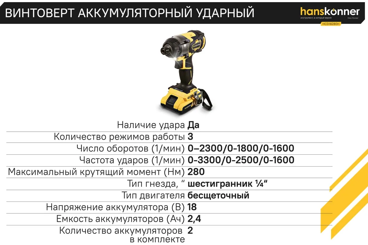 Аккумуляторный шуруповерт Hanskonner HCD18280H имеет функцию удара, благодаря чему помогает справлятьсядаже с закисшими соединениями. Модель оснащена бесщеточным двигателем, из-за чегоувеличивается рабочий ресурс инструмента. Три скоростных режимапомогают настроить изделие под конкретный материал. Два аккумулятора в комплектеобеспечивает длительную работубез перерывов.