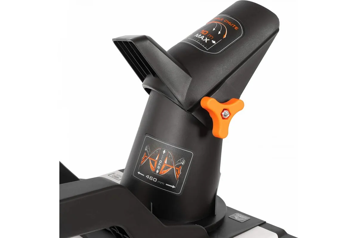 Возможность изменения направления и дальности выброса снега гарантирует тщательную и быструю уборку территории.