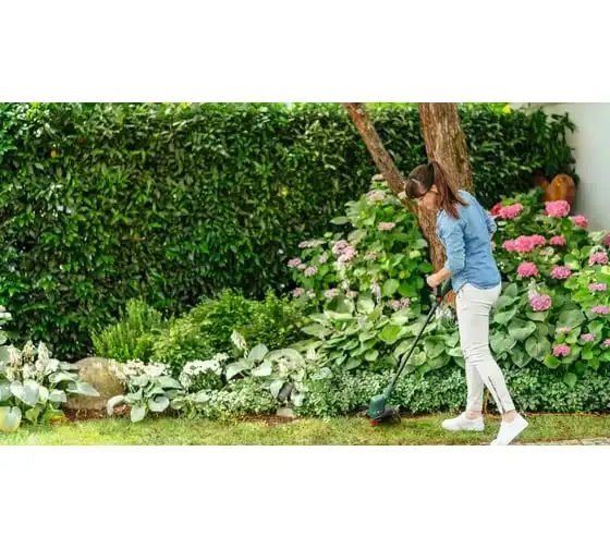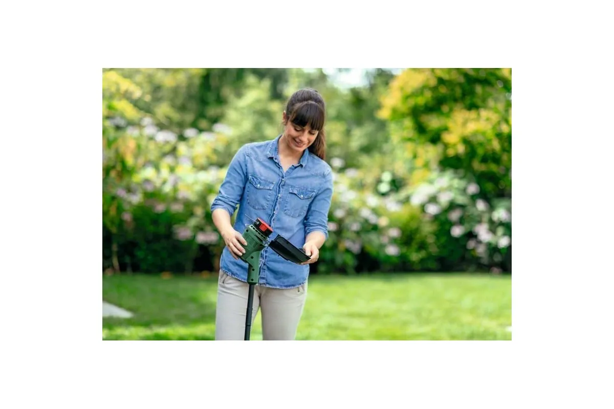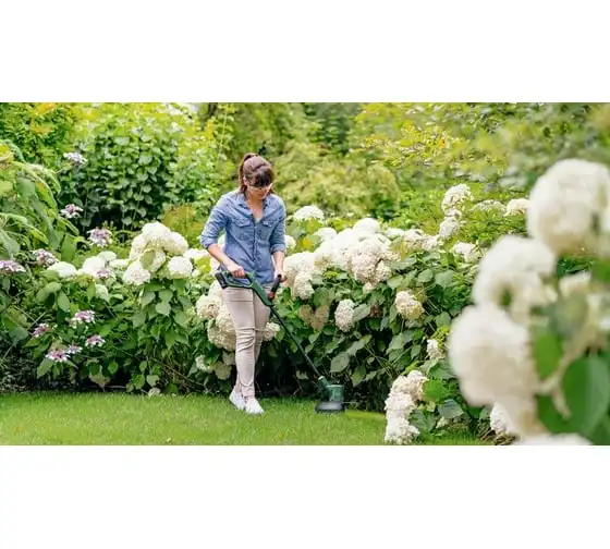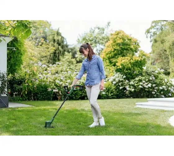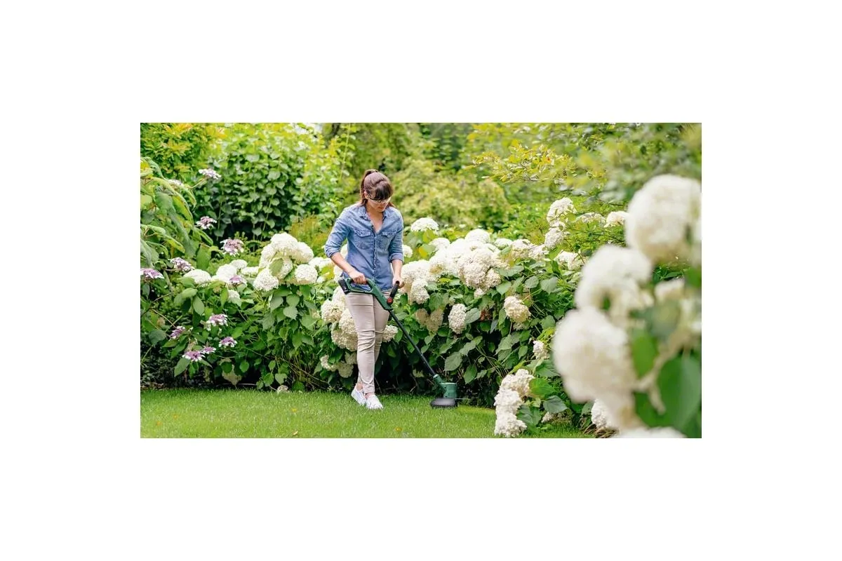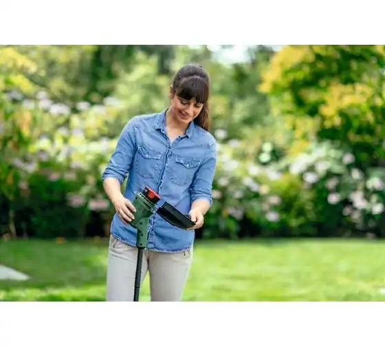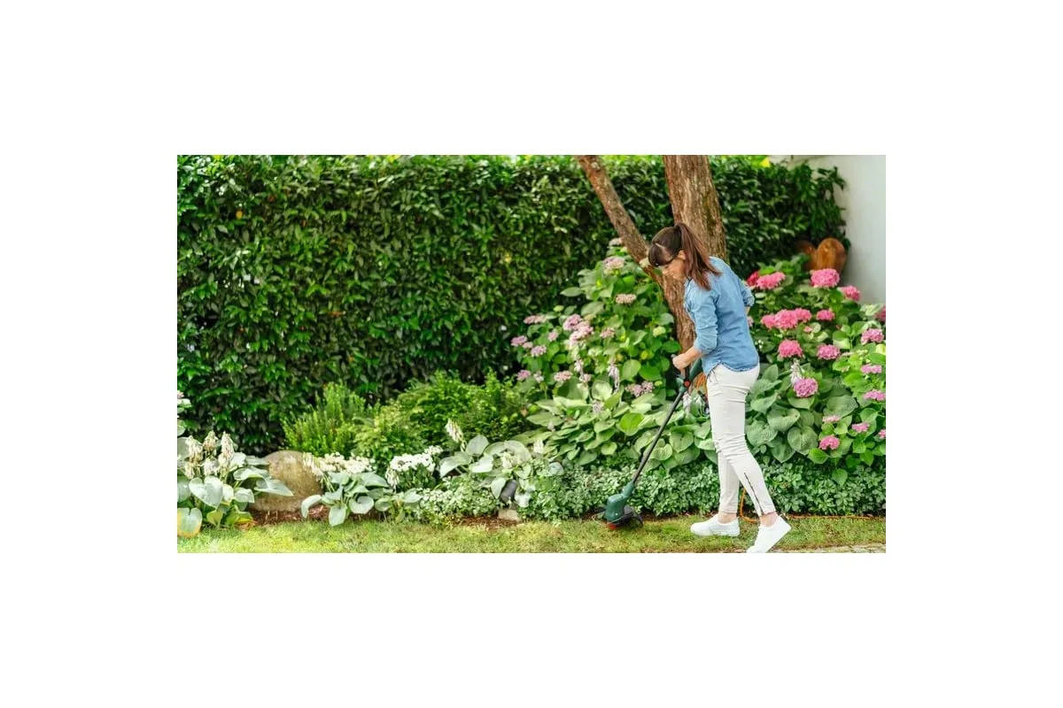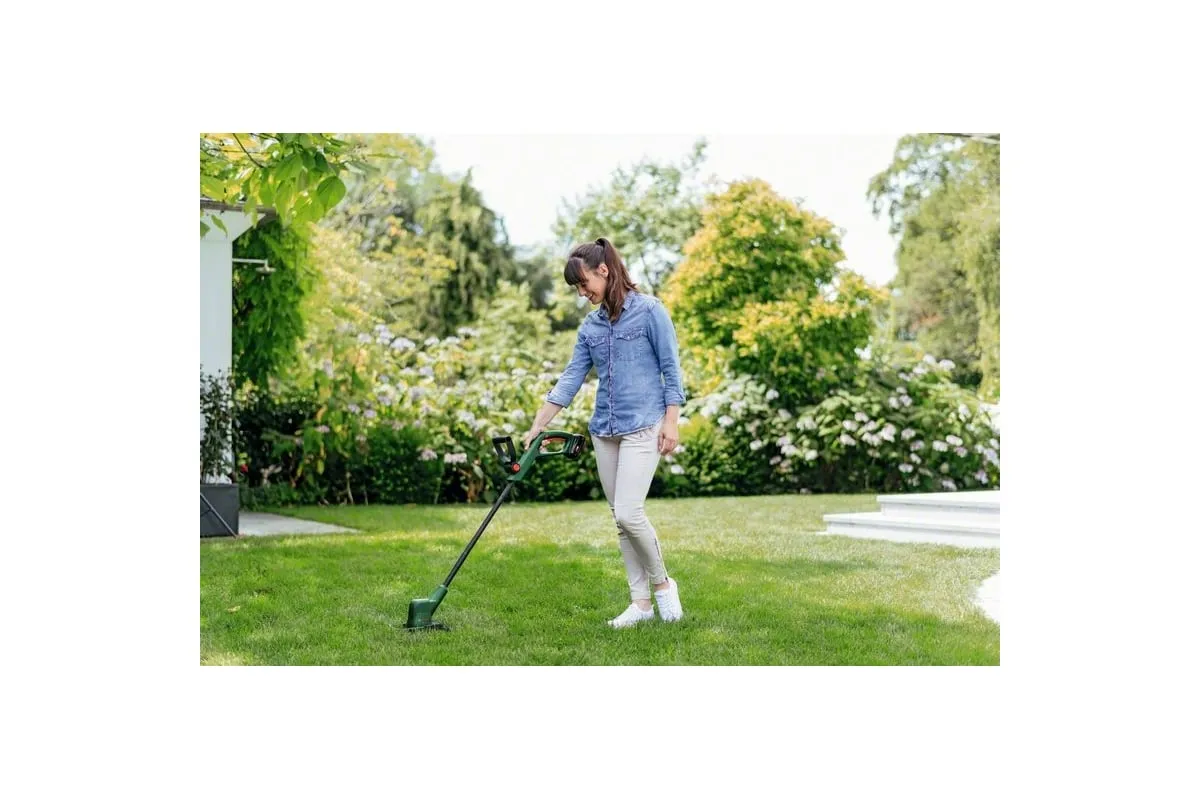 Аккумуляторный триммер Bosch EasyGrassCut 18V-230 06008C1A03 используется для ухода за газоном.