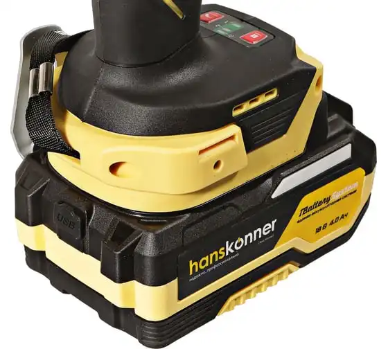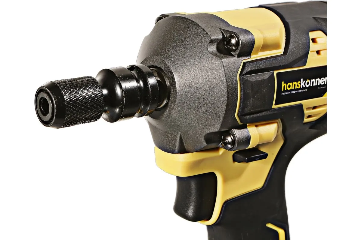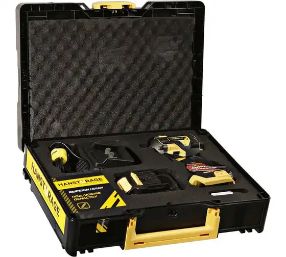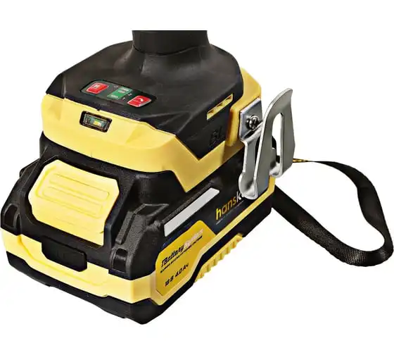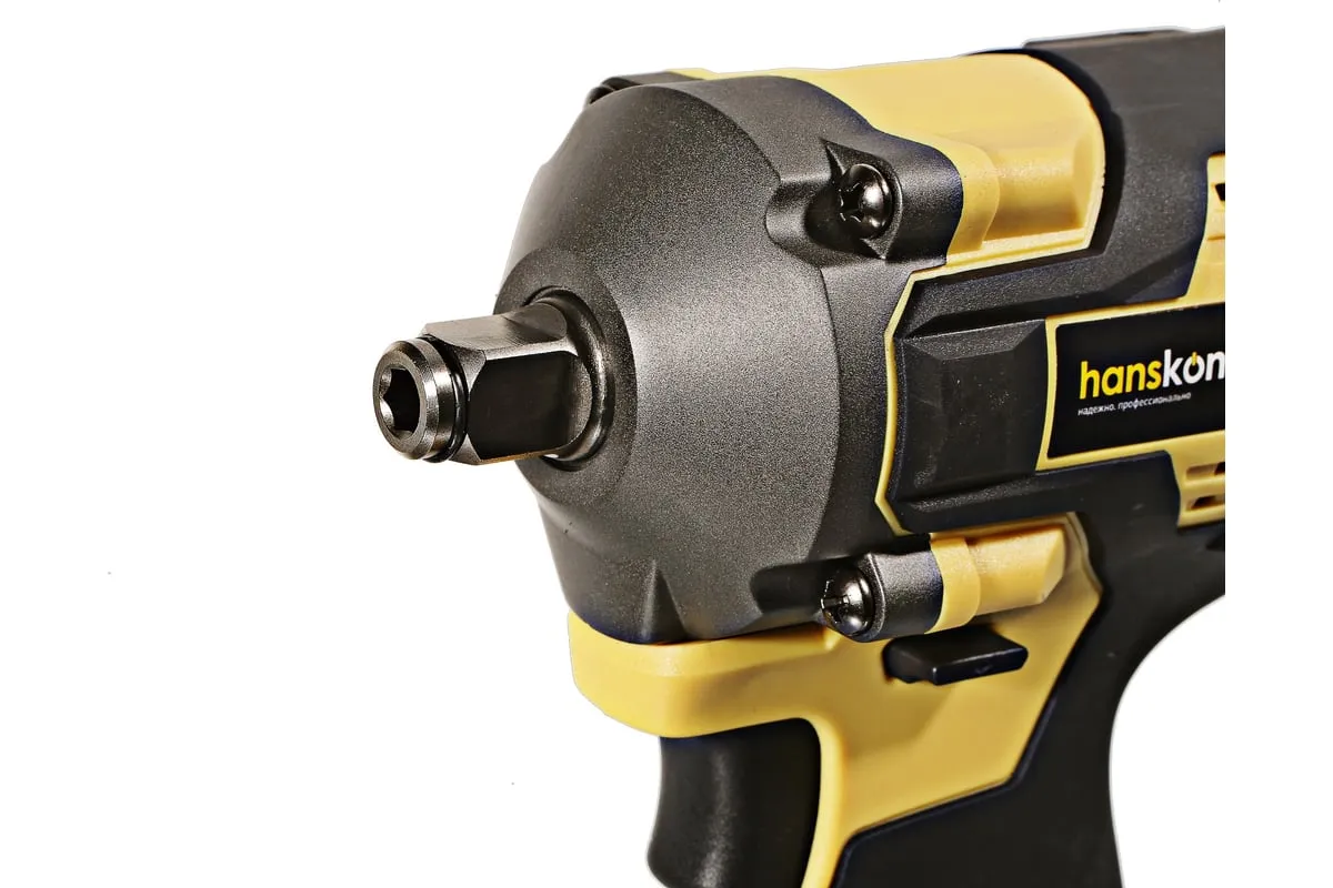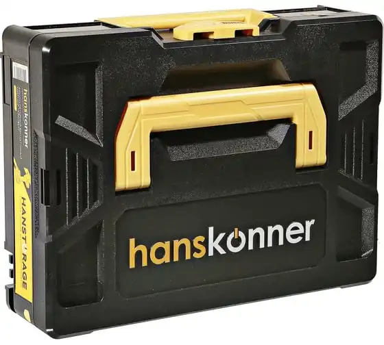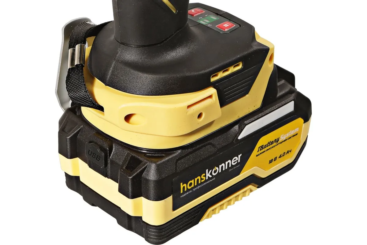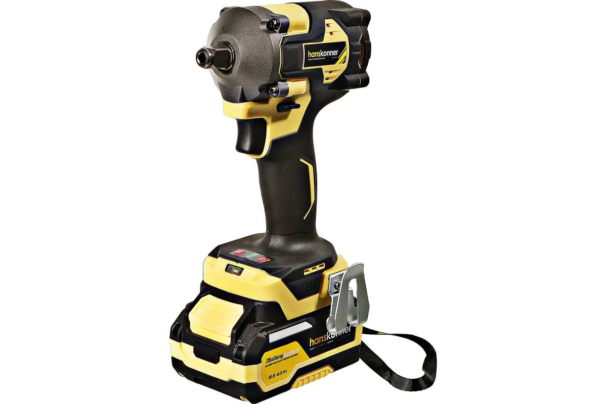 Hanskonner HCD20420BLС – аккумуляторный 18 В, ударный гайковерт с наружным квадратом 1/2″ и возможностью установки оснастки под шестигранник 1/4″ – является частью системы 1BatterySystem, обеспечивающей совместимость одного и того же аккумулятора с целым рядом наименований инструмента. Модель обладает максимально сбалансированной компоновкой: небольшие размеры корпуса и рукояти позволяют эффективное использование в условиях с затрудненным доступом, а нейтральный центр тяжести, и обилие прорезиненных противоскользящих поверхностей способствуют надежному хвату, и лучшему контролю. Гайковерт оснащен 18 В бесщеточным двигателем, характеризующимся на 30% лучшей производительностью в сравнении с коллекторными аналогами. Модель Hanskonner HCD20420BLС имеет два режима настройки крутящего момента: 280 Н м и 420 Н м – пользователь выбирает нужный, исходя из поставленных задач. К особенностям Hanskonner HCD20420BLC стоит отнести электронный тормоз двигателя, эффективную LED-подсветку рабочей зоны WorkingLight с блоком коллиматорных линз, создающих направленный симметричный луч, а также индикатор остаточного заряда аккумулятора PowerCheck. Дополнительному комфорту использования способствует специальная зацепная скоба крепления на пояс и страховочный ремешок на руку. Прочный кейс единой системы хранения инструмента HANSTORAGE гарантирует сохранность устройства и аксессуаров в процессе транспортировки. Назначение: для ударного закручивания / откручивания различных крепежных элементов.