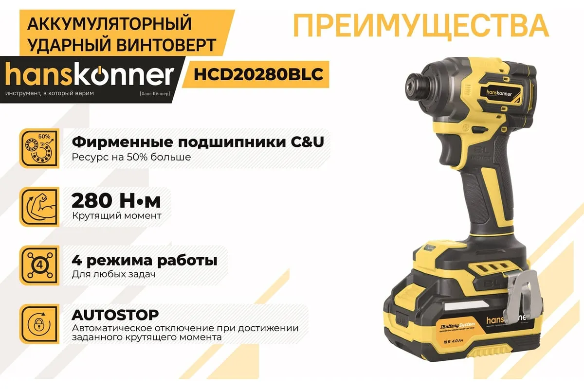 Аккумуляторный ударный винтоверт предназначен для ударного закручивания/откручивания различного крепежа. Крутящий момент в 280 Нм и наличие ударного механизма позволяет работать с крепежом больших длин и диаметров (закручивание/выкручивание глухарей, длинных саморезов, сверление толстостенного металла с помощью саморезов со сверлом). Особенности: