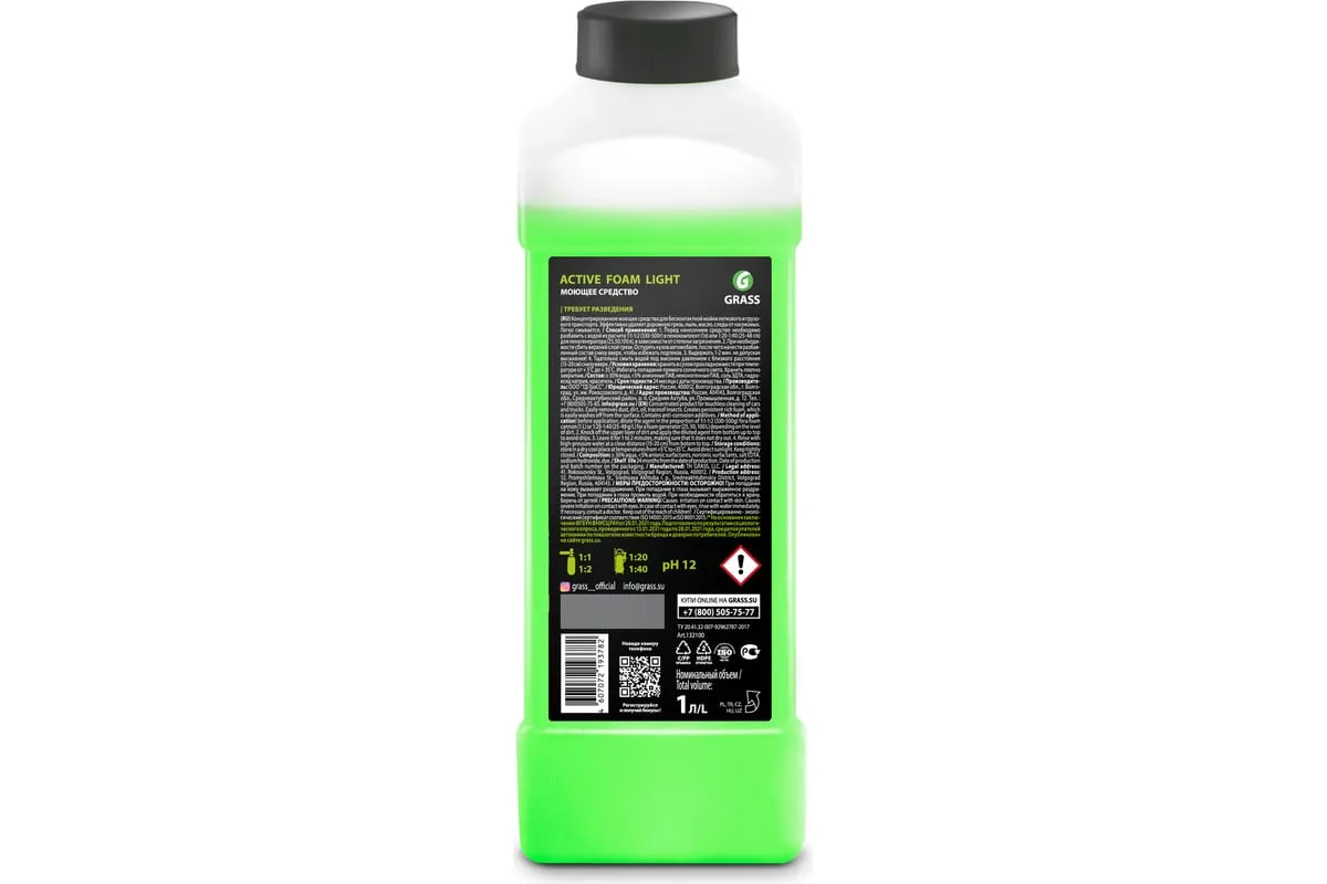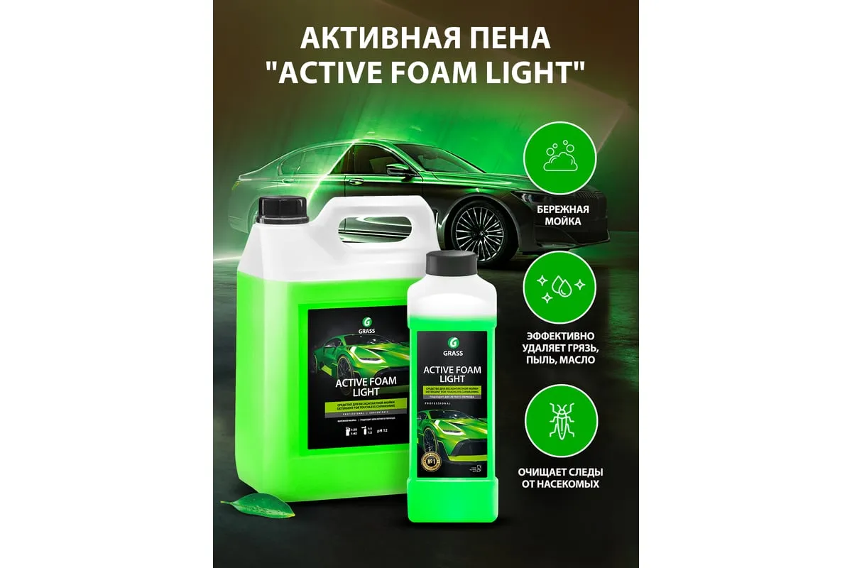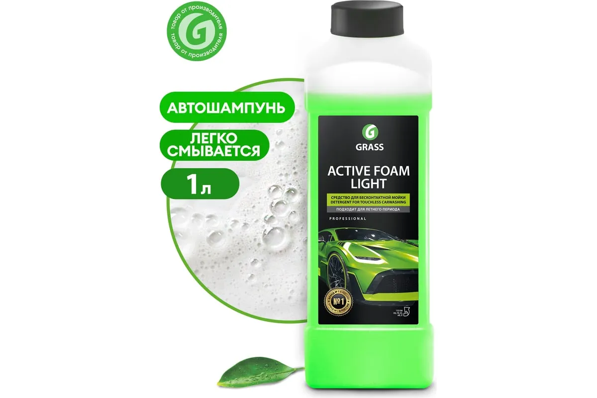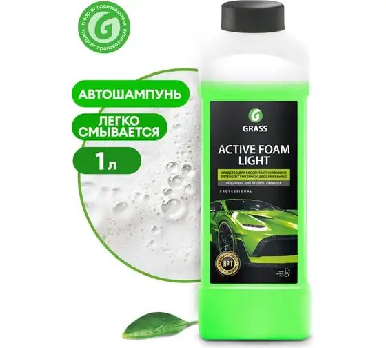 Активная пена Grass Active Foam Light 1 л 132100 относится к моющим щелочным средствам (pH 12). Автохимия не наносит вреда поверхностям из сплавов цветных металлов. Назначение - бесконтактная мойка автокузова (быстрое удаление пыли, масла и прочих загрязнений).