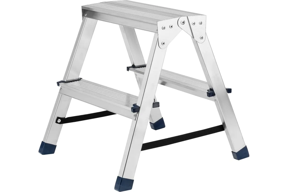 Алюминиевая двусторонняя стремянка СИБРТЕХ 2 ступени 97922 широко используется в частных домах и квартирах. Имеет широкие рифленые ступени для безопасного подъёма и спуска. При изготовлении использовался прессованный алюминиевый профиль. Этогарантирует изделию коррозионную стойкость и прочность. Изделие оснащено пластиковыми наконечниками, которыеисключают скольжения по поверхности и не повреждают покрытие пола.
