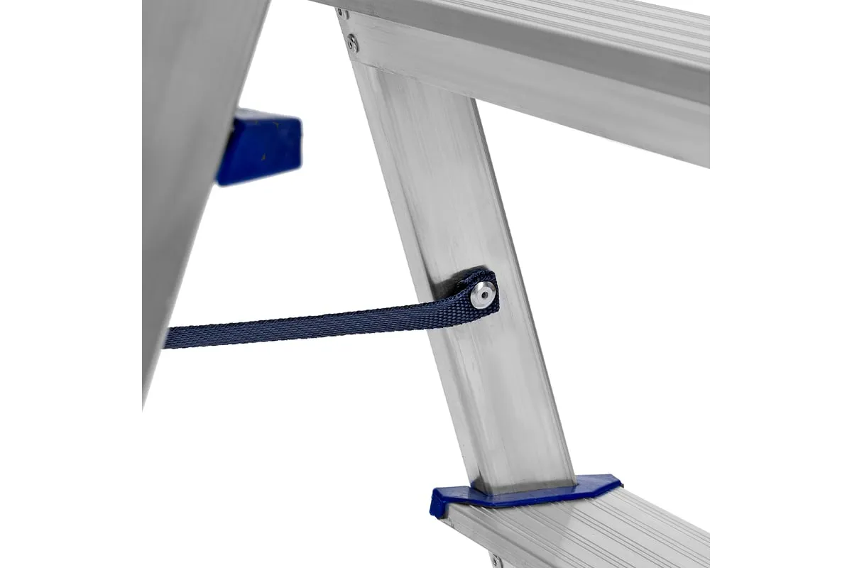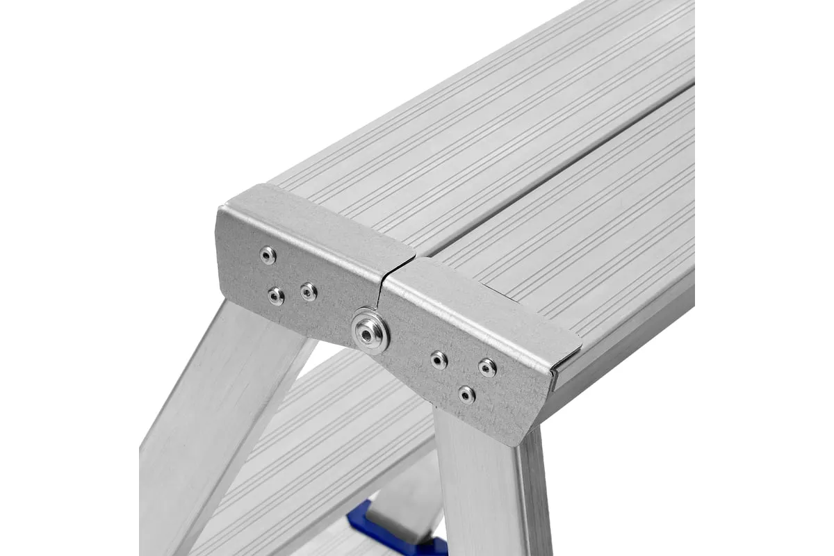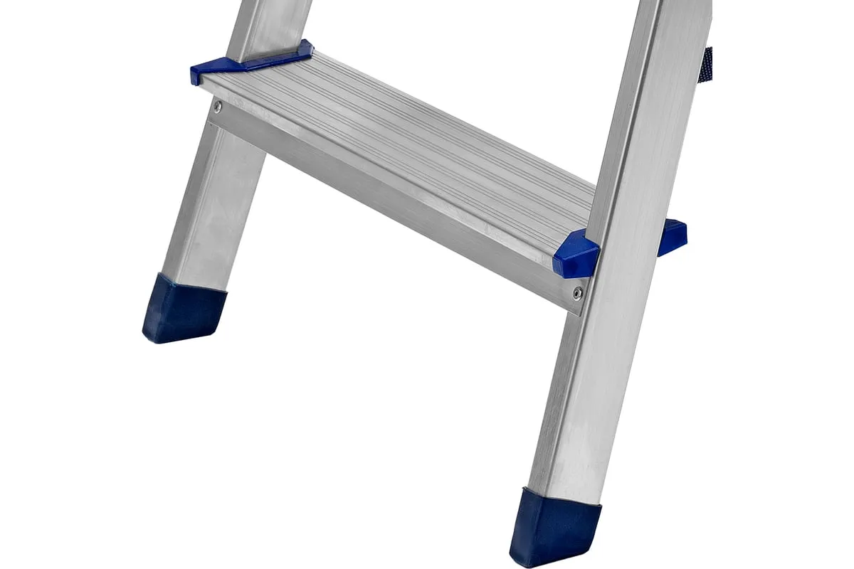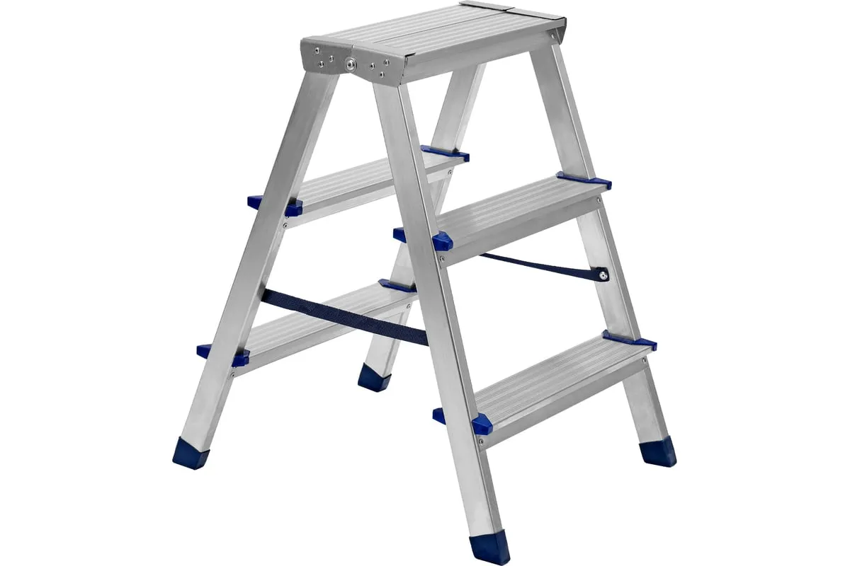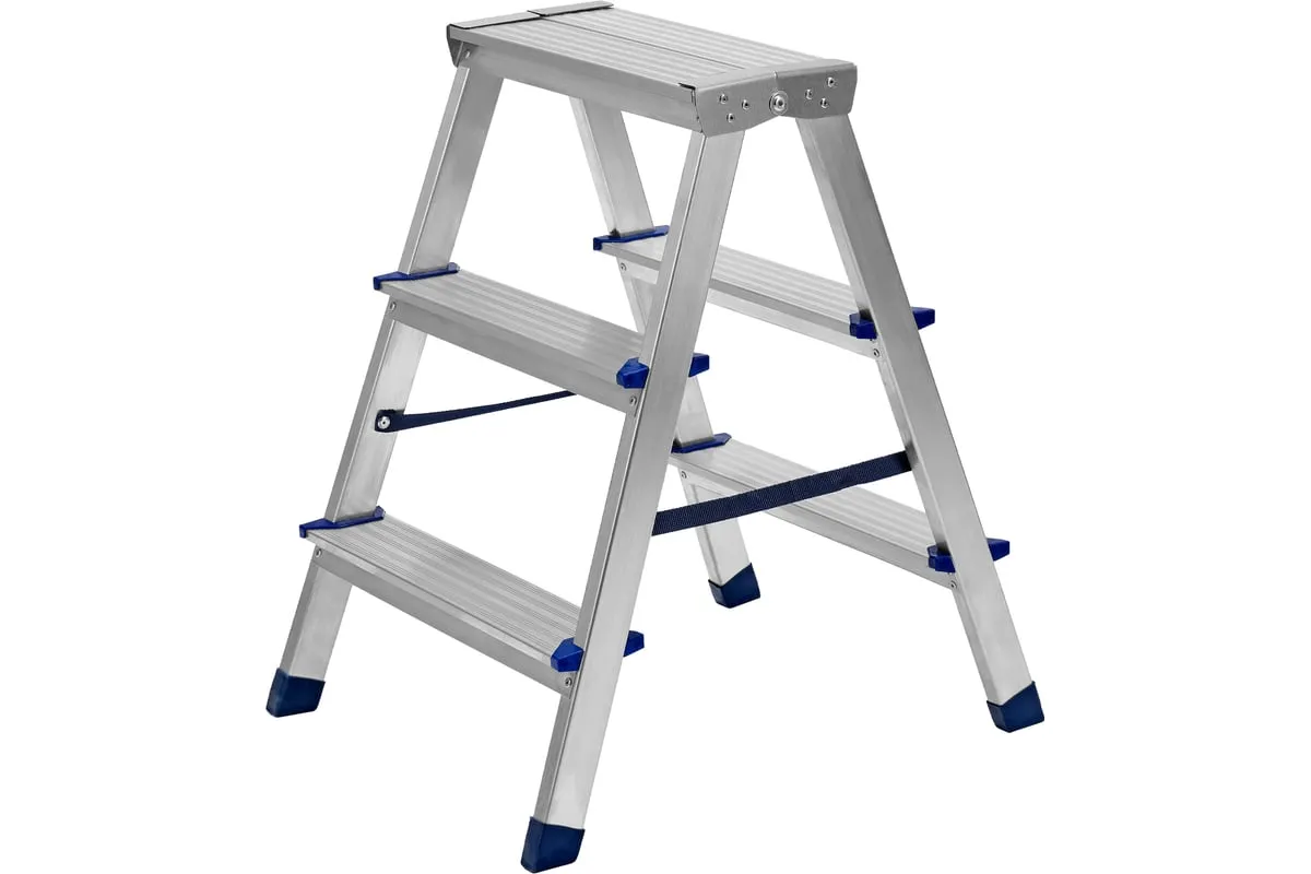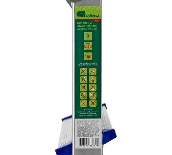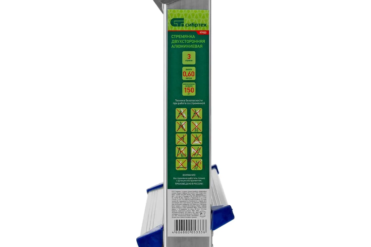 Алюминиевая двусторонняя стремянка СИБРТЕХ 3 ступени 97923 широко используется в частных домах и квартирах. Имеет широкие рифленые ступени для безопасного подъёма и спуска. При изготовлении использовался прессованный алюминиевый профиль. Этогарантирует изделию коррозионную стойкость и прочность. Изделие оснащено пластиковыми наконечниками, которыеисключают скольжения по поверхности и не повреждают покрытие пола.