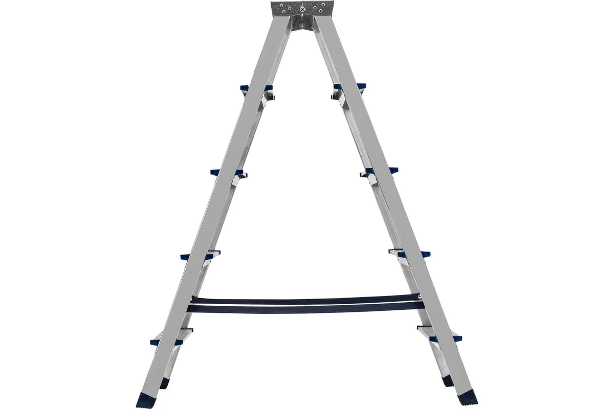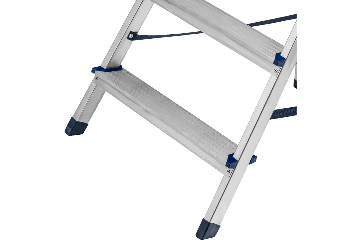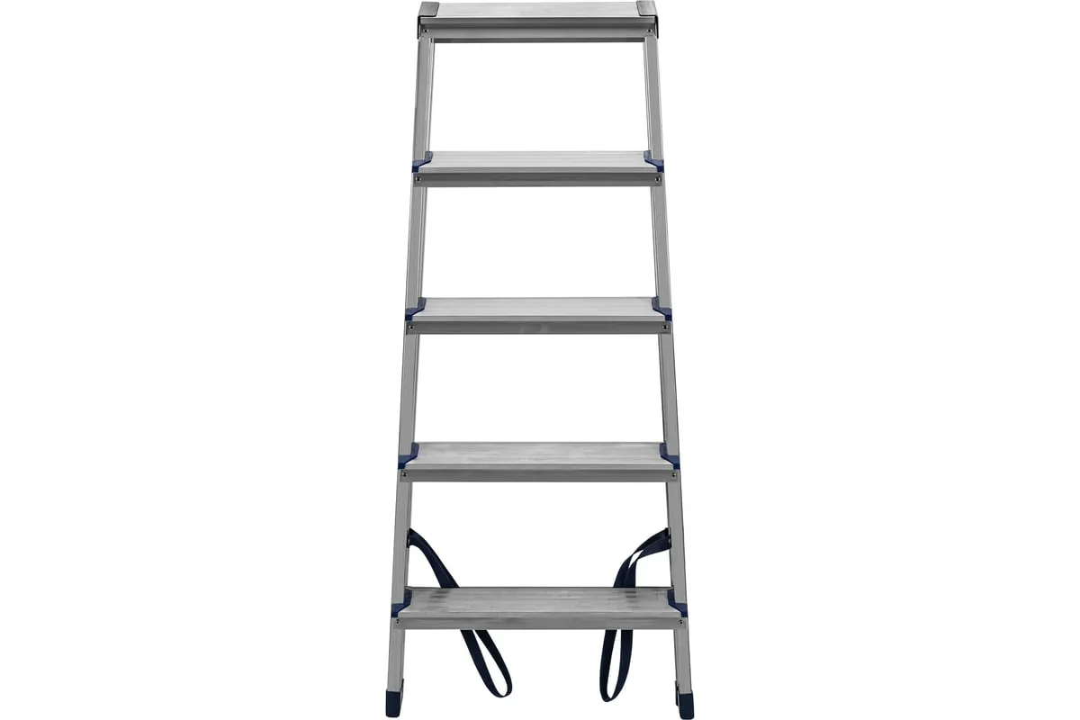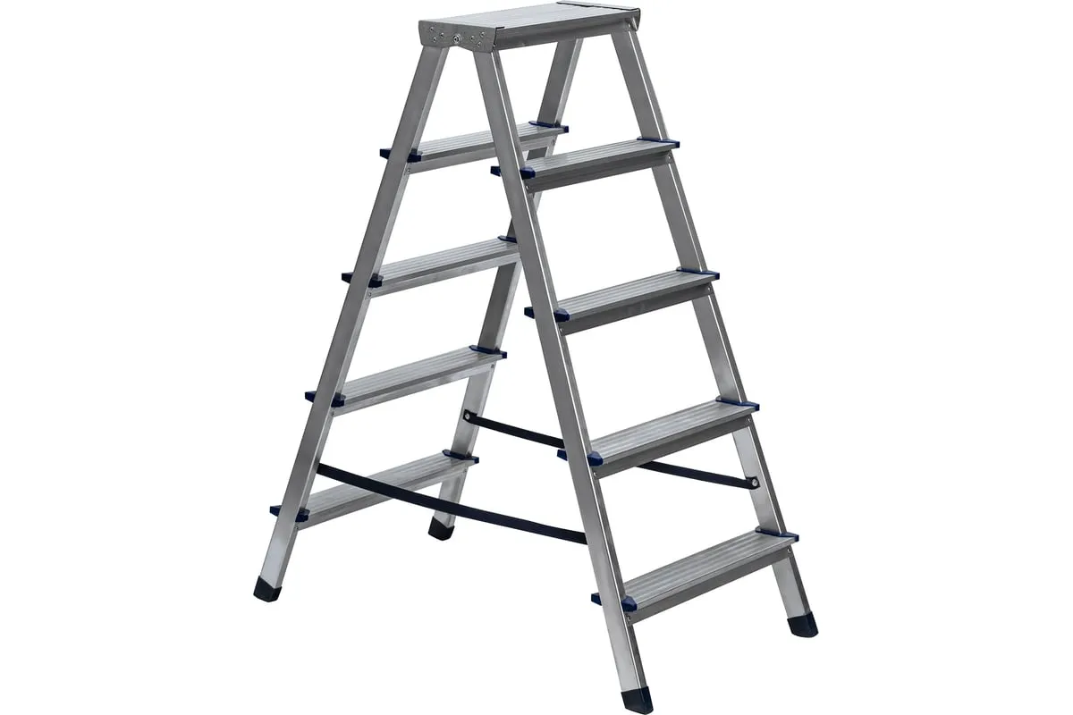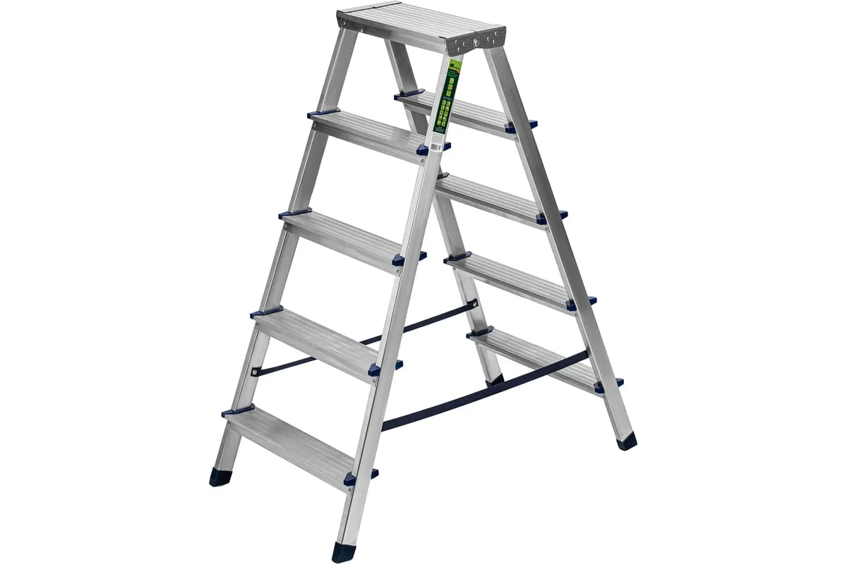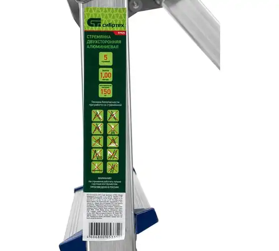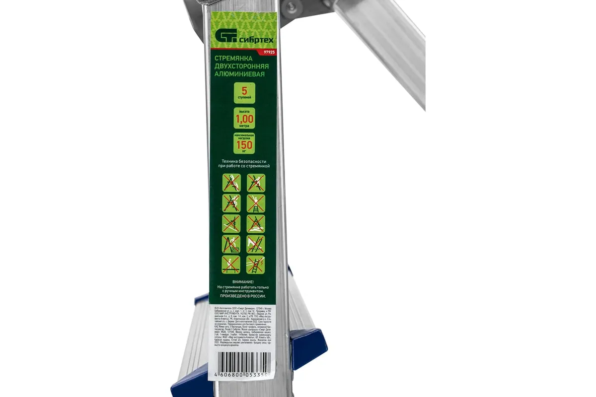 Алюминиевая двусторонняя стремянка СИБРТЕХ 5 ступеней 97925 широко используется в частных домах и квартирах. Имеет широкие рифленые ступени для безопасного подъёма и спуска. При изготовлении использовался прессованный алюминиевый профиль. Этогарантирует изделию коррозионную стойкость и прочность. Изделие оснащено пластиковыми наконечниками, которыеисключают скольжения по поверхности и не повреждают покрытие пола.