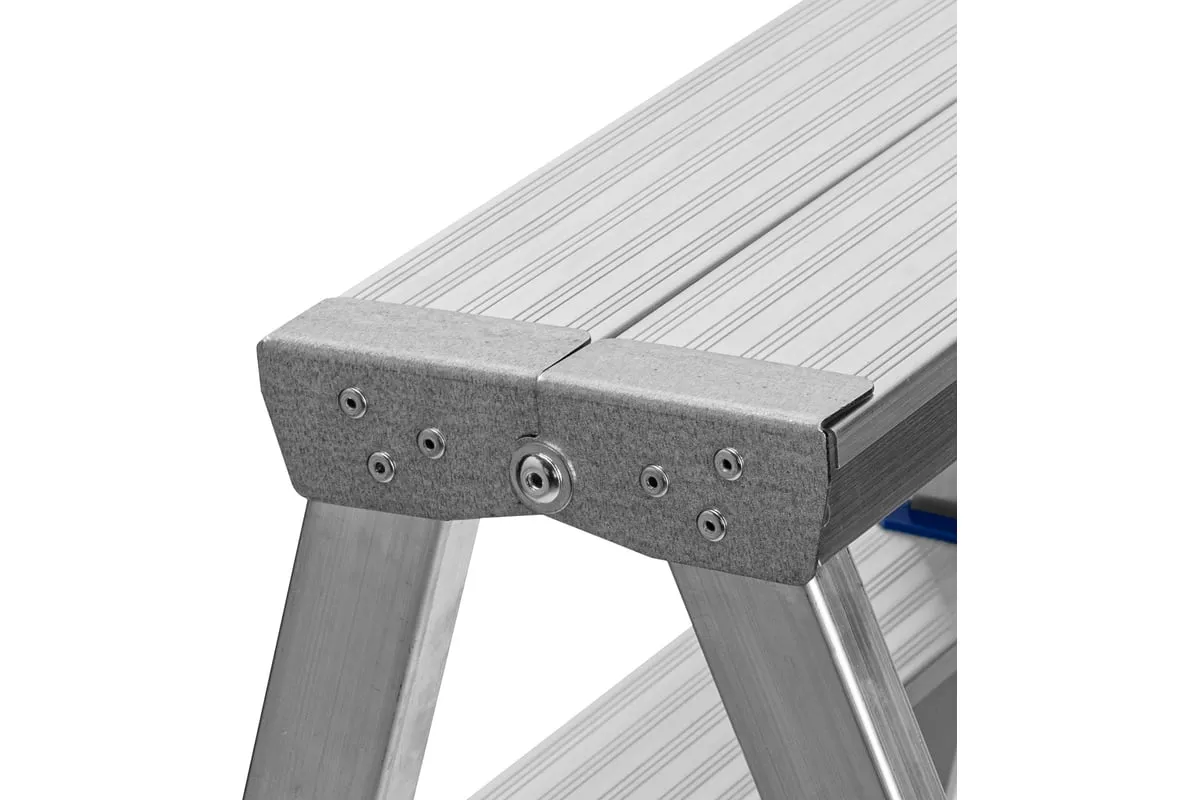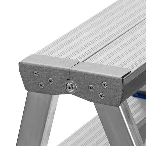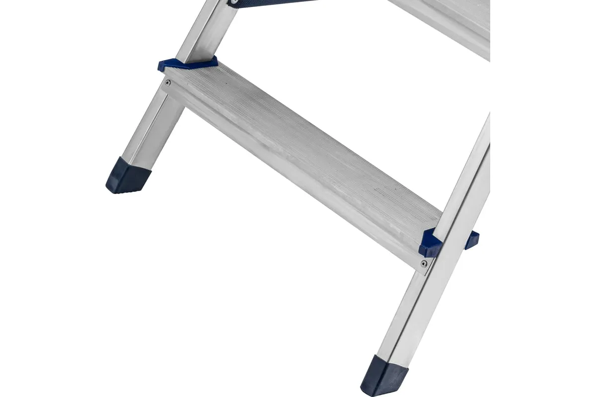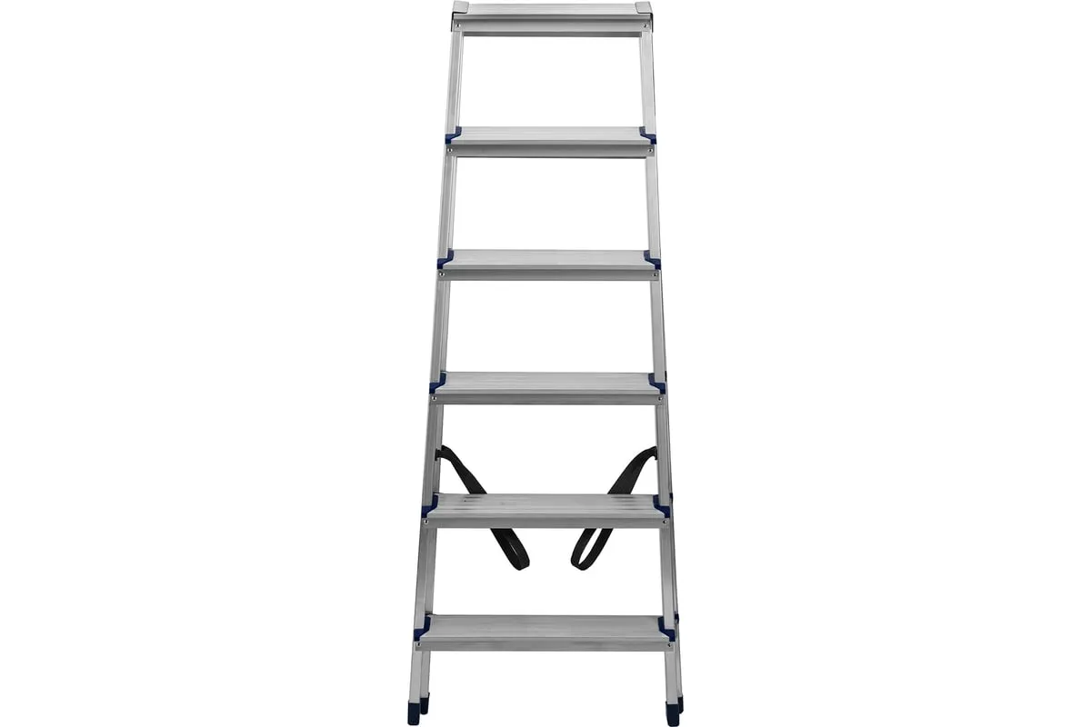 Алюминиевая двусторонняя стремянка СИБРТЕХ 6 ступеней 97926 широко используется в частных домах и квартирах. Имеет широкие рифленые ступени для безопасного подъёма и спуска. При изготовлении использовался прессованный алюминиевый профиль. Этогарантирует изделию коррозионную стойкость и прочность. Изделие оснащено пластиковыми наконечниками, которыеисключают скольжения по поверхности и не повреждают покрытие пола.