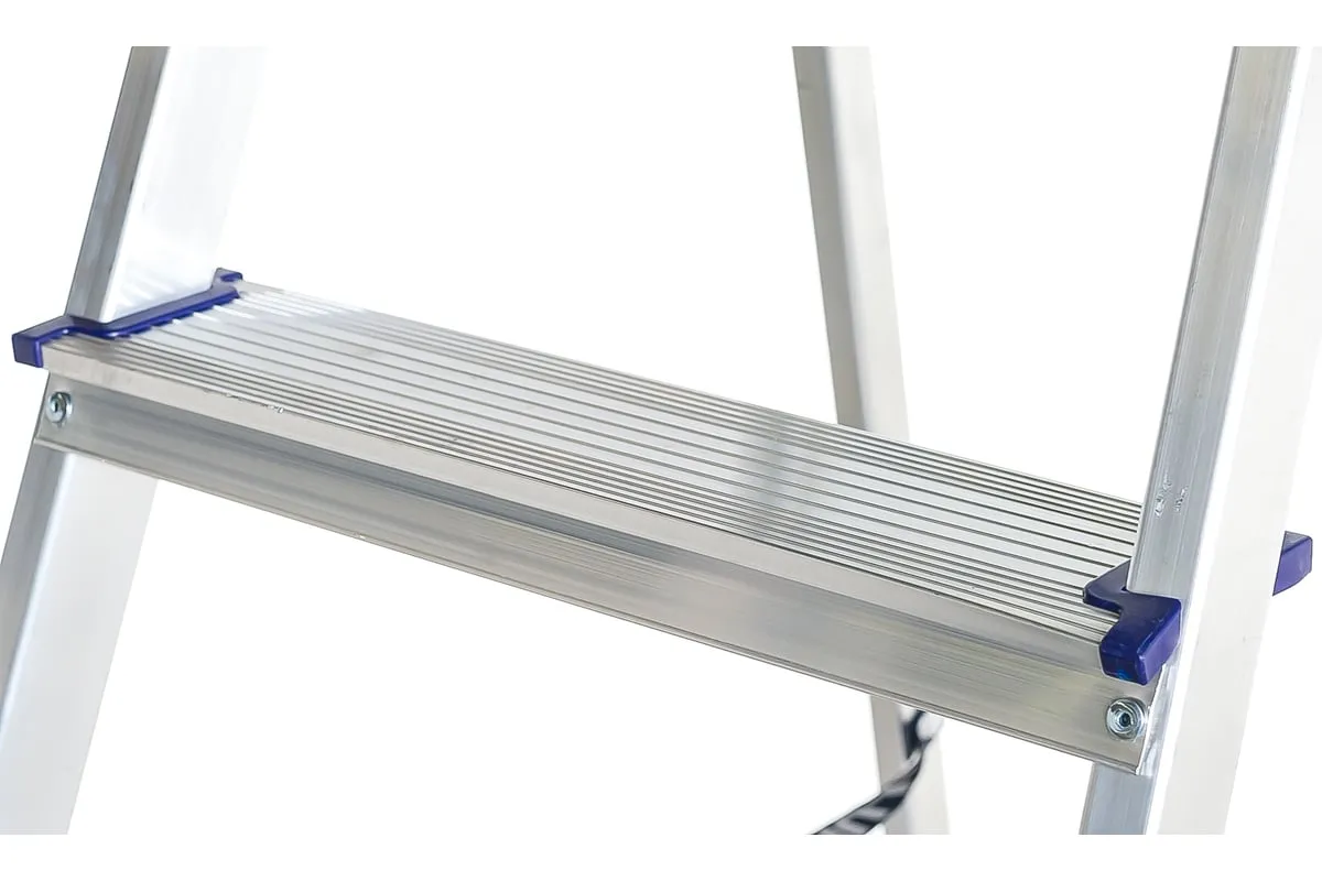 Тетивы и ступени стремянки изготовлены из высокопрочного алюминиевого сплава (ГОСТ 22233-2018), что обеспечивает прочность и долговечность при минимальном весе.