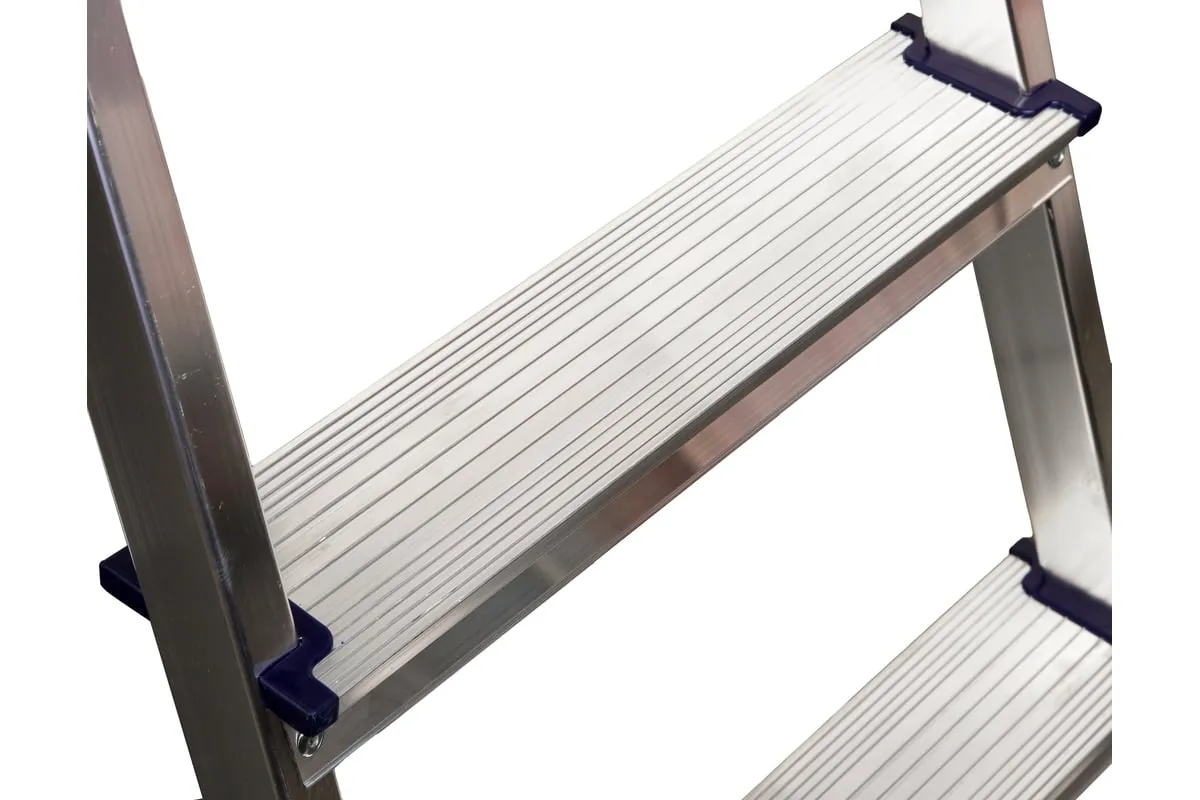 Тетивы и ступени стремянки изготовлены из высокопрочного алюминиевого сплава (ГОСТ 22233-2018), что обеспечивает прочность и долговечность при минимальном весе.