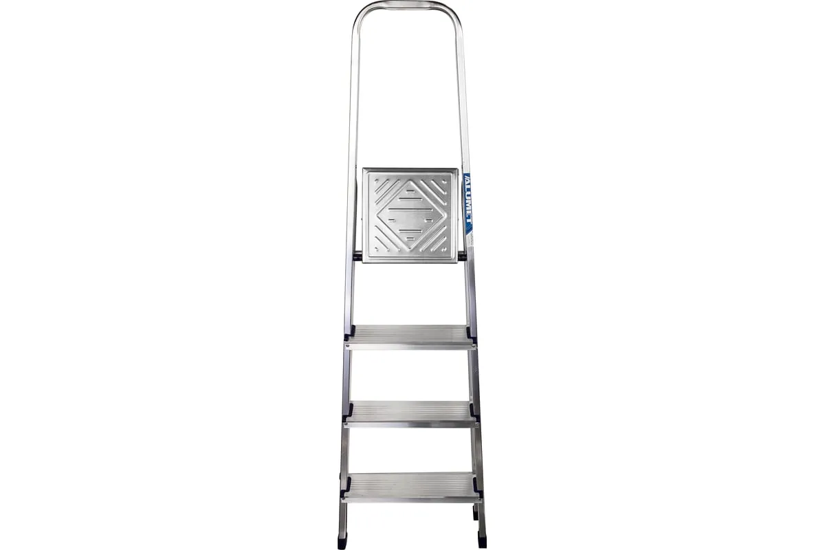 Стремянка алюминиевая- представляет собой свободностоящую переносную лестницу, сужающуюся к верху, имеющую одну сторону для подъема, и оборудованную дугой безопасности, конструктивно выполненной совместно со стороной подъема.