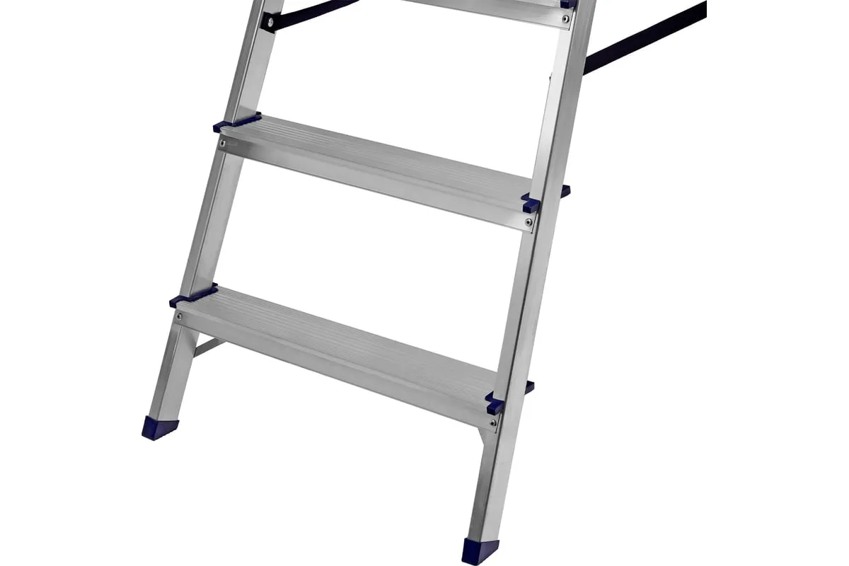 Алюминиевая стремянка СИБРТЕХ 8 ступеней 97718 используется для осуществления различных работ на высоте, например, для внутренней отделки помещений или сбора плодов с деревьев в саду и пр. Широкие профилированные ступениобеспечивают безопасный спуск/подъем, удобство при длительной работе на высоте. Благодаря наличию высокой дуги работник может безопасно выполнять различные высотные работы. Страховочные ремни предотвращают случайное складывание стремянки.