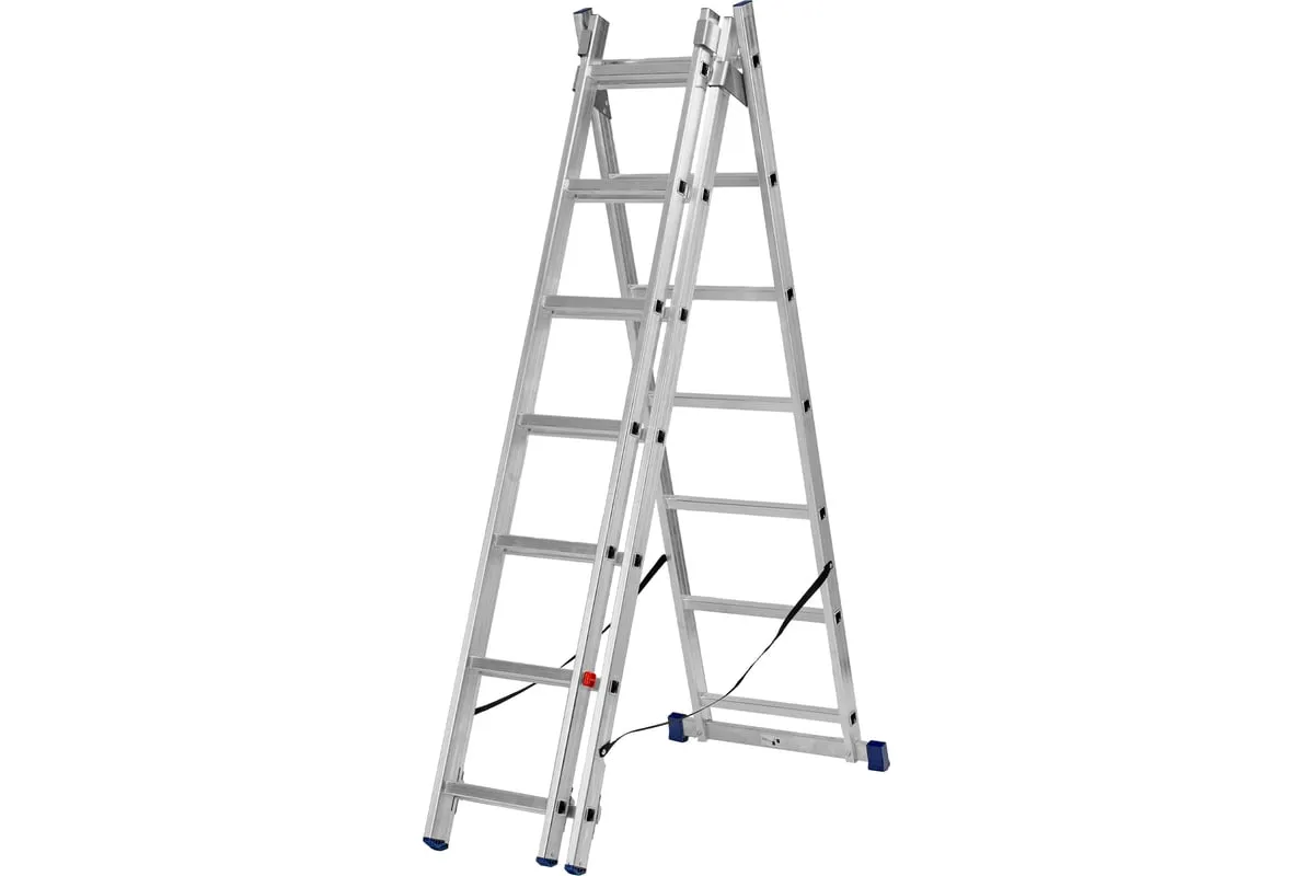 Алюминиевая трехсекционная лестница Pоссия 3x7 ступеней СИБРТЕХ 97817 используется при покраске фасада дома, монтировании электроосветительных приборов, работе в саду и т.д. Имеет четыре различных положения и подходит для выполнения работ на высоте до 3.6 м. Защиту от скольжения на рабочих поверхностях обеспечивают заглушки и широкая траверса.