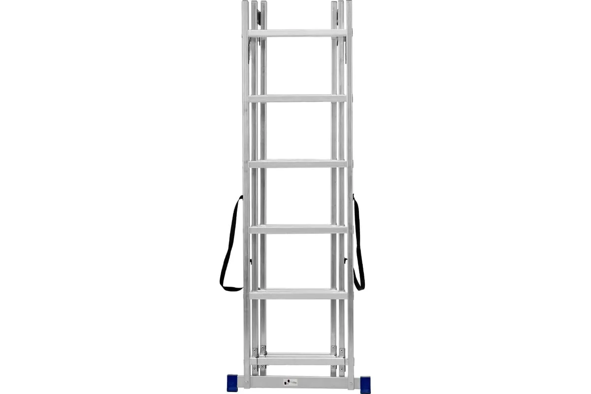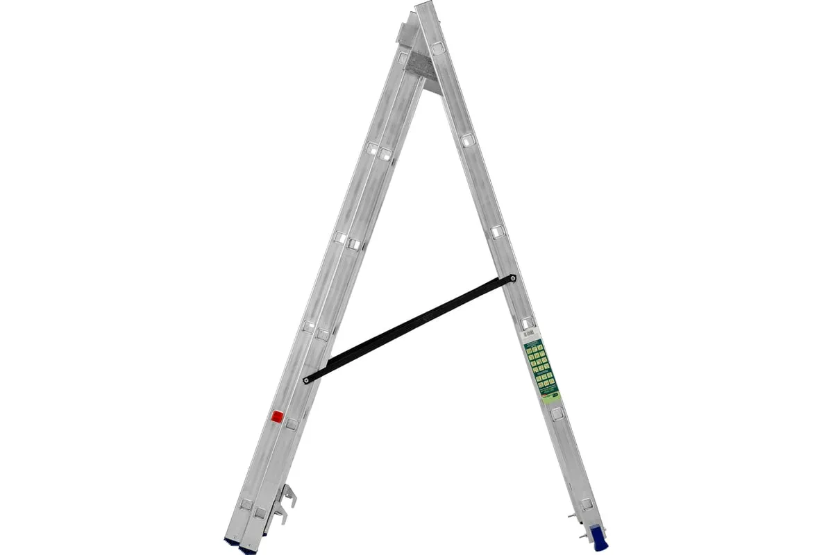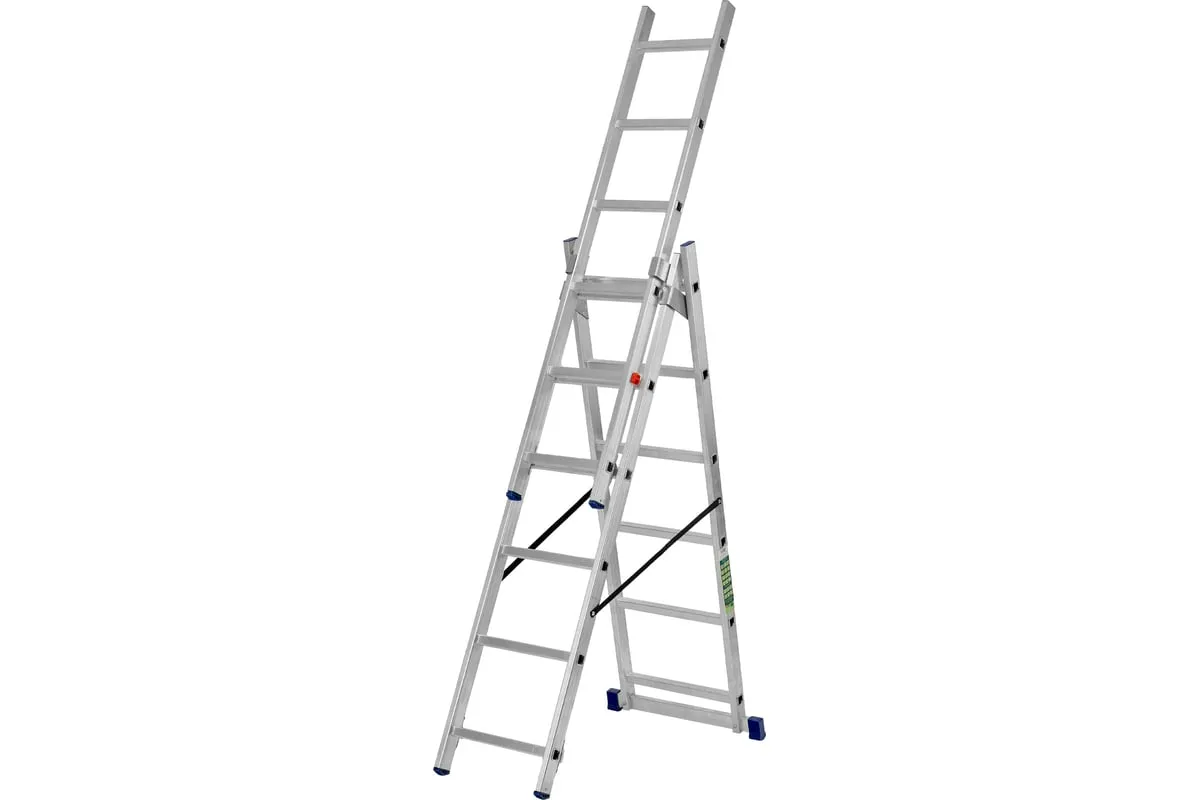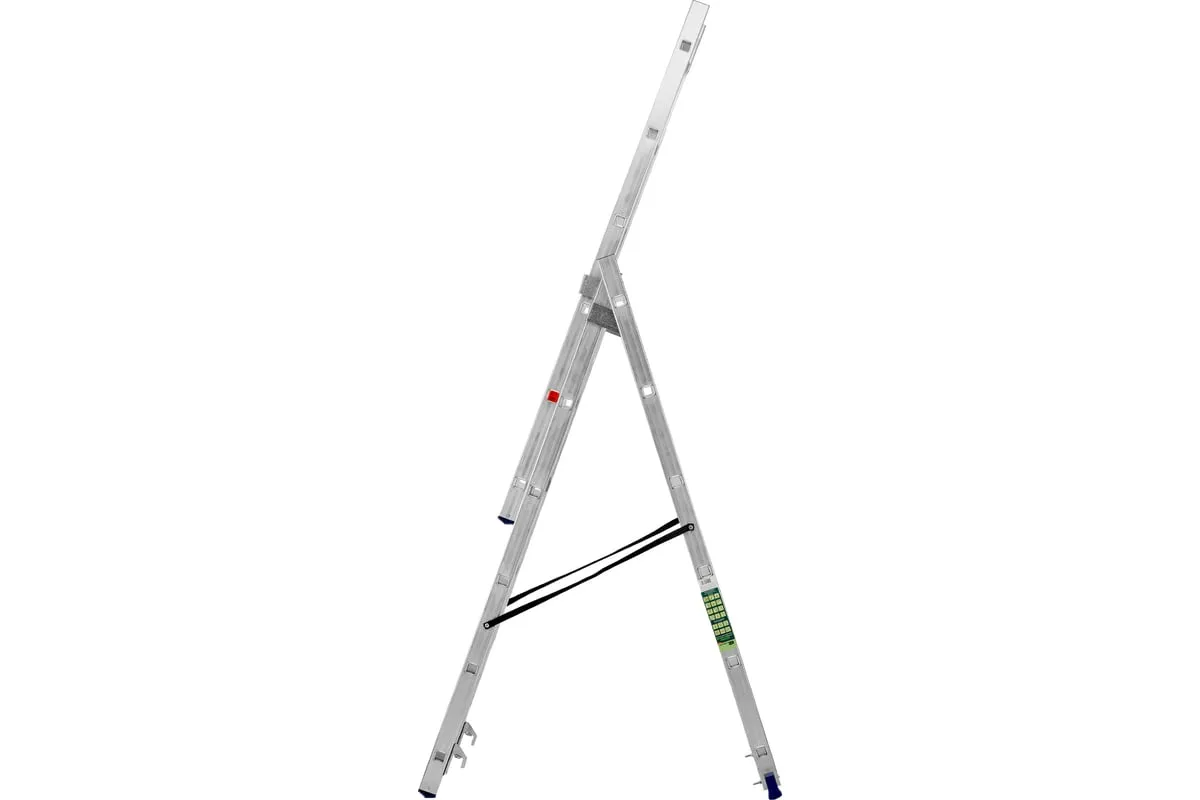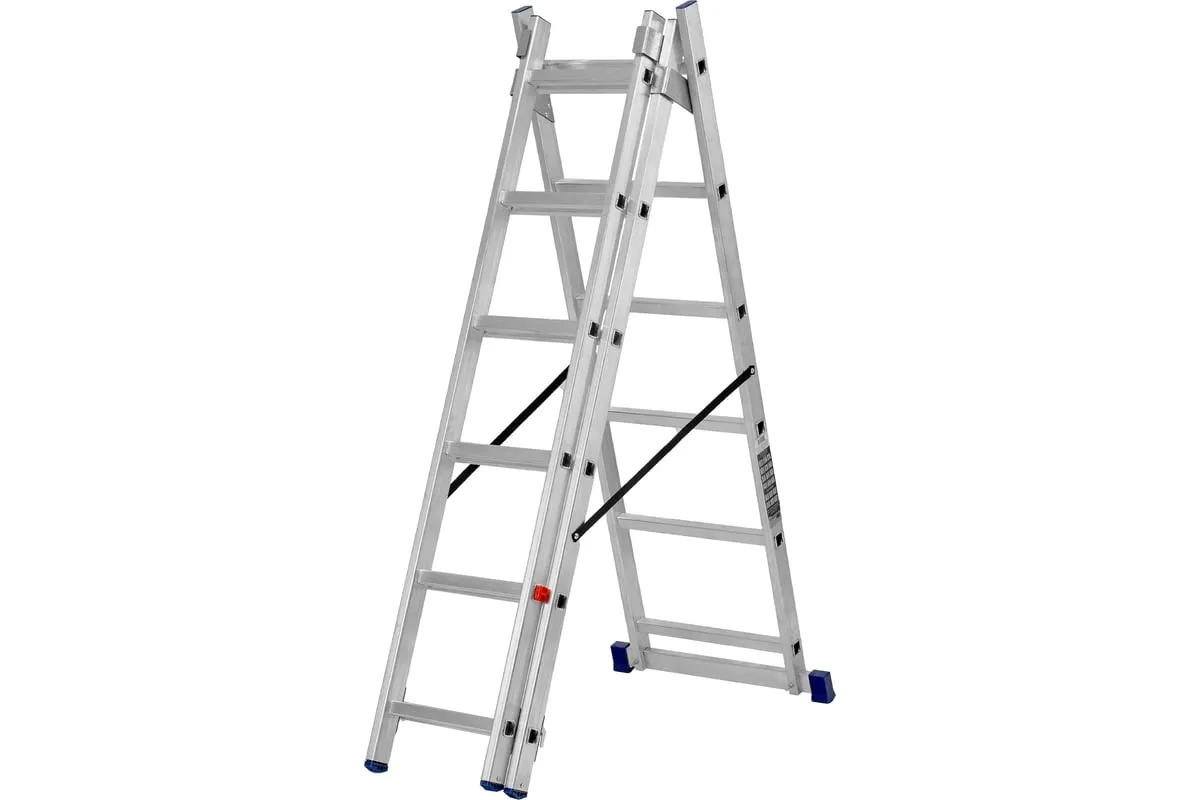 Алюминиевая трехсекционная лестница СИБРТЕХ 3х6 ступеней 97816 применяется для высотных работ, как покраска фасада дома, монтирование электроосветительных приборов, работа в саду и др. Трансформируется в четыре различные формы и подходит для выполнения работ на высоте до 3 м. Защиту от скольжения на рабочих поверхностях обеспечивают заглушки и широкая траверса.