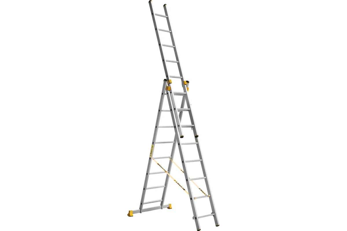 Лестница алюминиевая трехсекционная универсальная профессиональная– замечательный выбор для проведения работ на высоте.