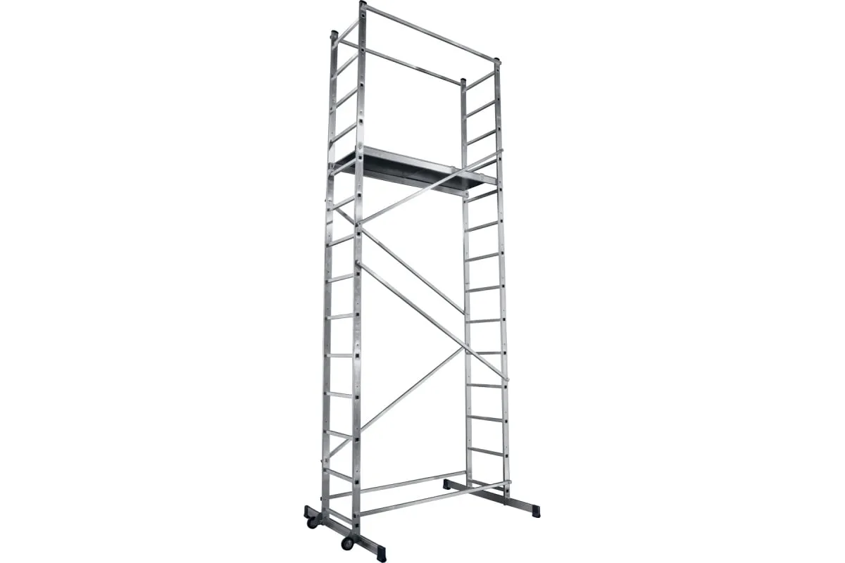 Алюминиевая вышка-тура СИБИН 5 метров 38840-5 широко применяется на строительных площадках для выполнения различных работ на высоте. Специальные соединения обеспечивают быструю сборку без инструмента. Надежные опоры и траверсы легко устанавливаются и повышают устойчивость. Перекладины на вертикальных рамах образуют лестницу для подъема с внутренней стороны. Высоту помоста можно регулировать от перекладины к перекладине. Размер рабочей платформы - 140х50 см. Вышку размещают на различных высотах, лестницах и уступах. Модель выполнены из профильных алюминиевых труб высокой прочности.