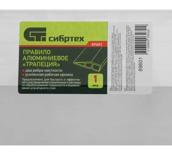 Алюминиевое трапециевидное правило с ребрами жесткости 1 м СИБРТЕХ 89601 применяется для выравнивания различных поверхностей с помощью строительных растворов, например, штукатурки. Инструмент имеет прочную и жесткую конструкцию. Корпус изготовлен из стойкого и легкого материала - алюминиевого сплава марки АД31.